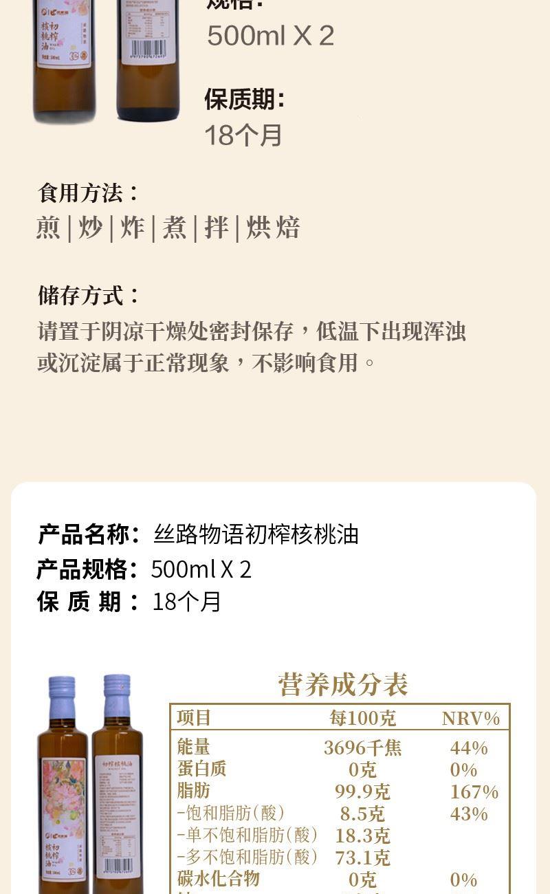 影田X优素福丝路物语初榨核桃油500ml*2双支礼盒
