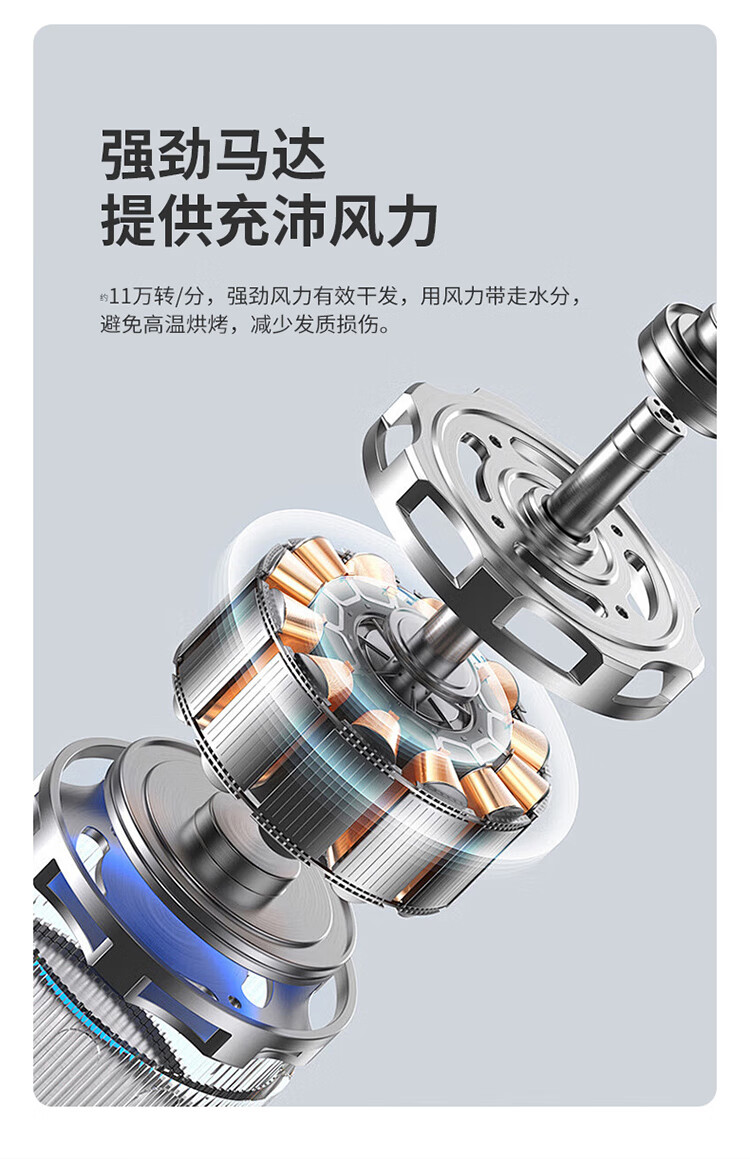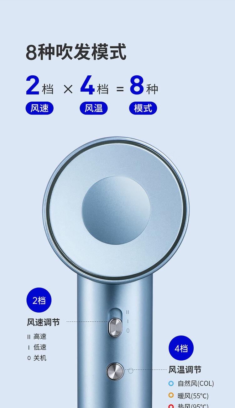 额定电压:220V~ 额定频率:50Hz 额定功率:1600W 控制方式:按键控制 负离子量: 约2亿 电机转速:约11万转/MIn 机器风嘴: 磁吸风嘴 主要材质:PC、ABS、尼龙 产品条码:6952020907248 装 箱 数:10台/箱-礼盒+邮购盒+大外箱