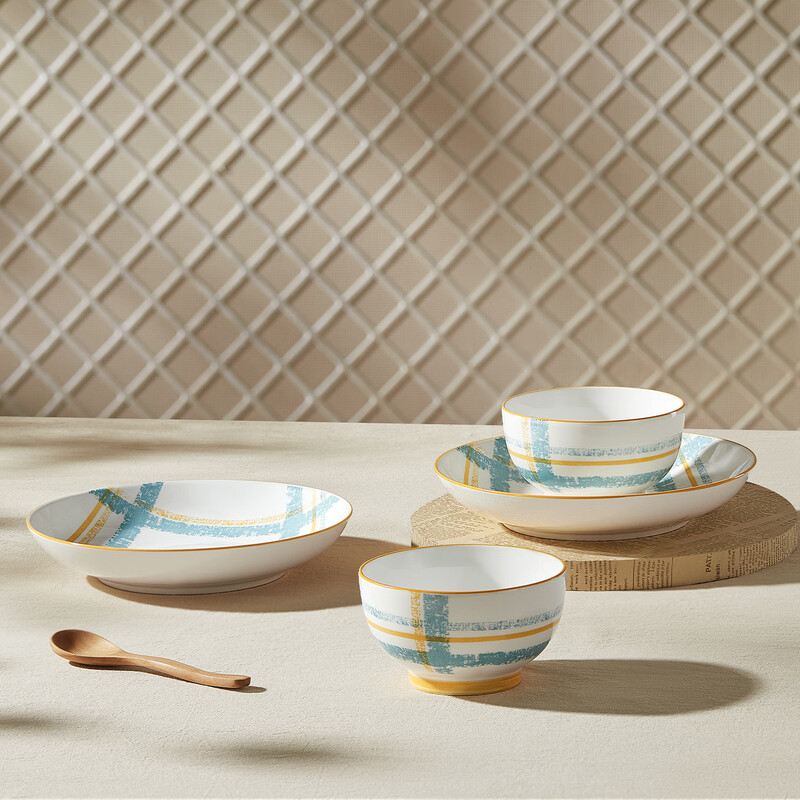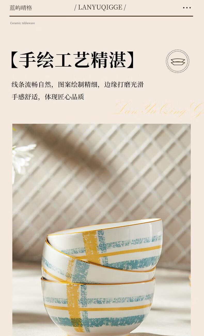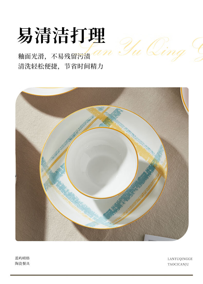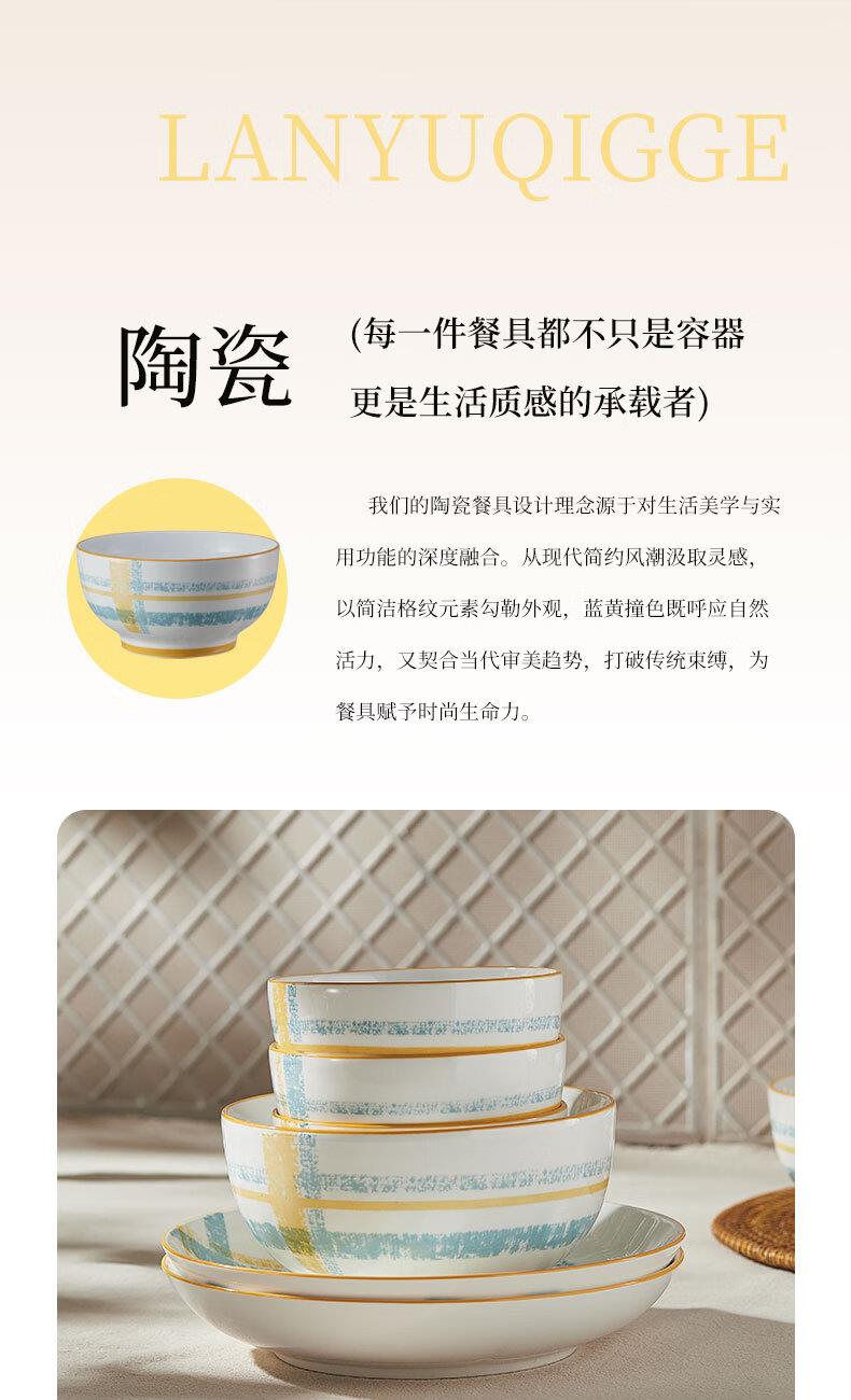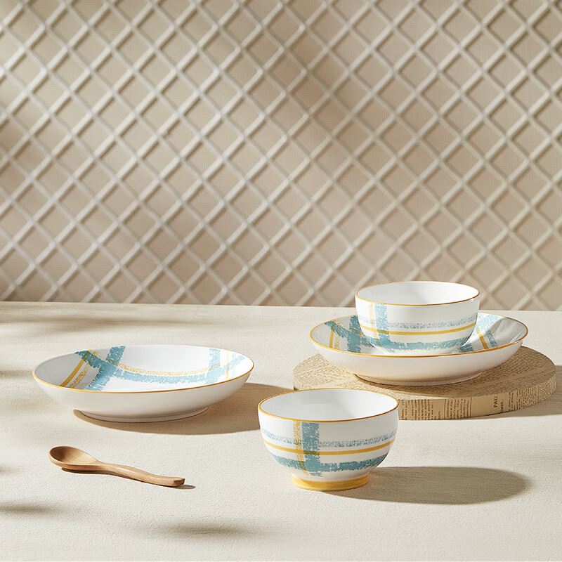 釉夏开门红-蓝屿晴格陶瓷餐具四件套Y-LY/L4H