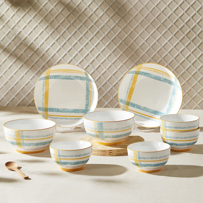 材 质: 高温瓷装 箱 规格:10套 /箱产品参数:4.5英寸小碗*2、8英寸盘子*2彩盒尺寸:350*92*234mm 外箱尺寸:48*37*49cm