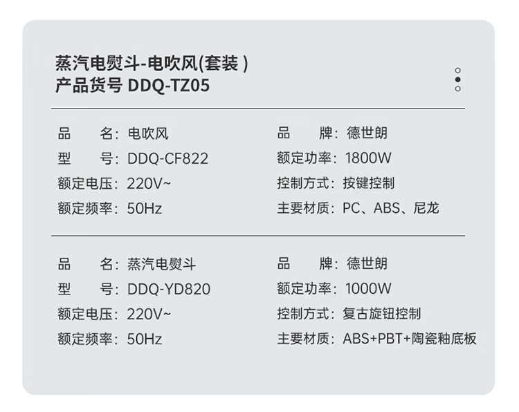 德世朗蒸汽电熨斗-电吹风(套装)DDQ-TZ05