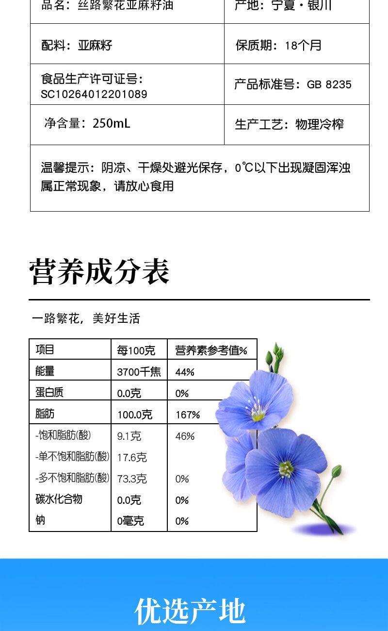 影田X优素福丝路繁花亚麻籽油250ml单支装