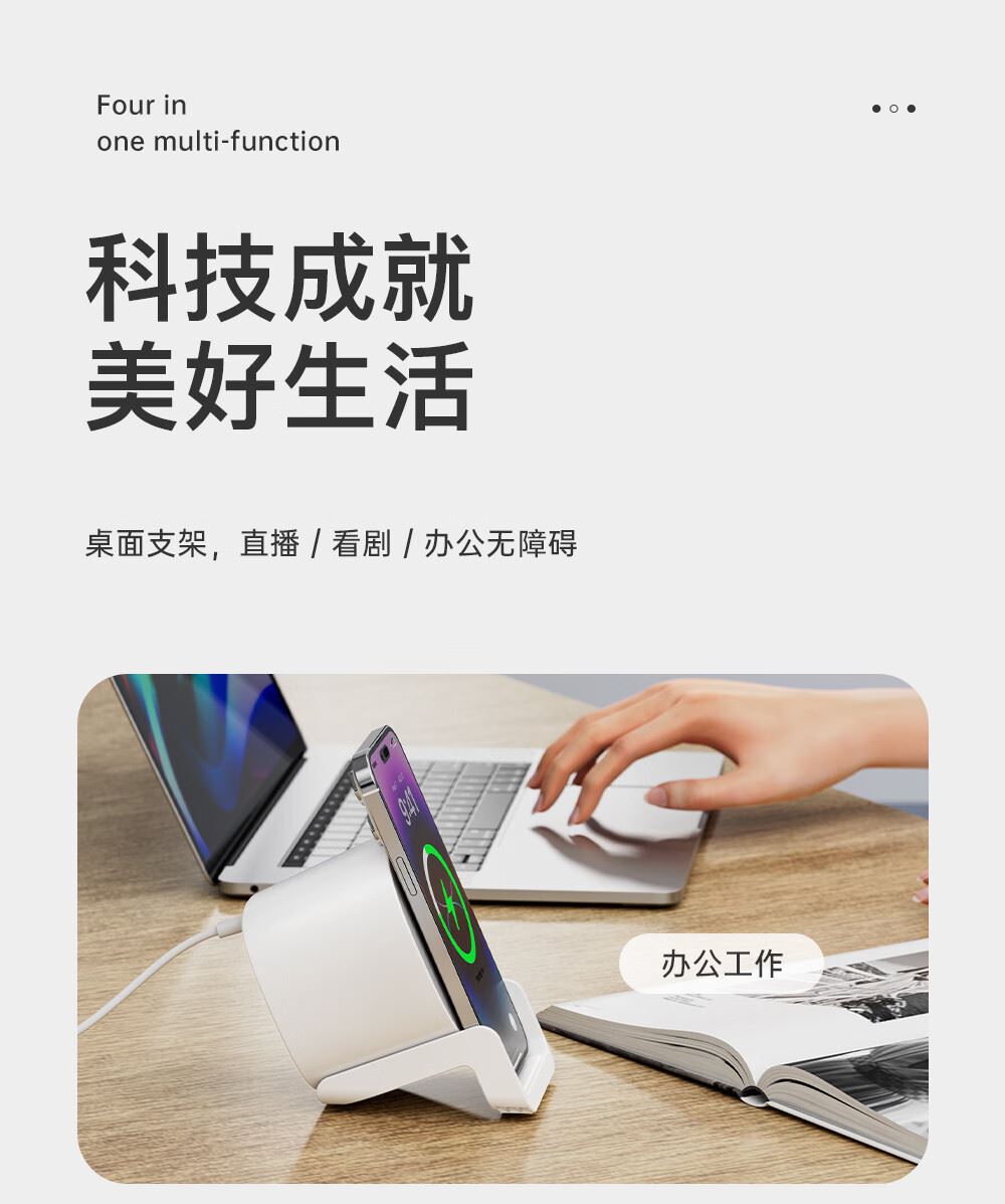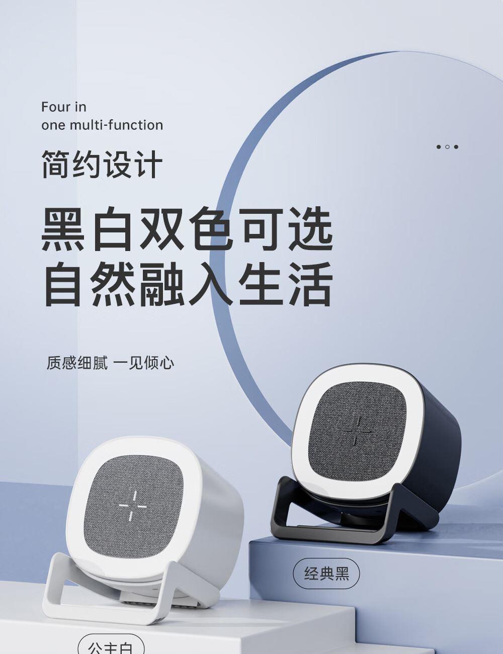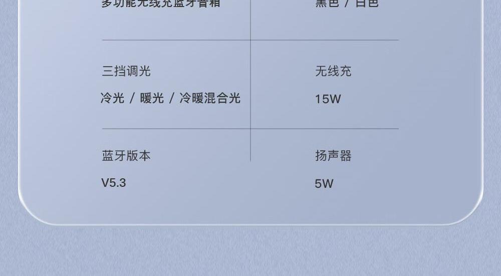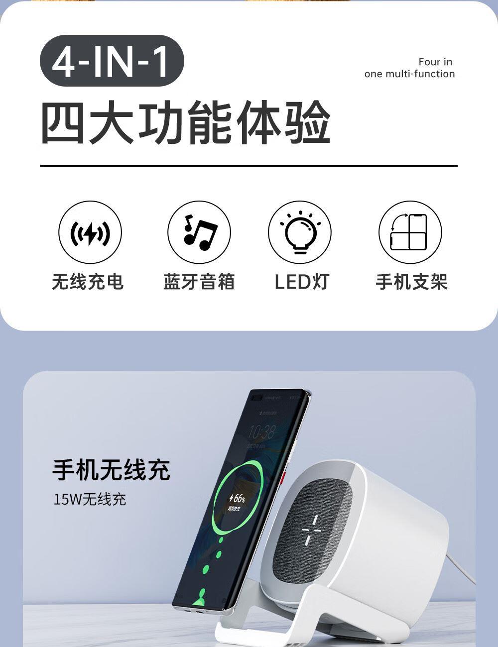 型号:T42 常规颜色: 白 材质工艺:ABS 供电方式:TYPE-C 蓝牙版本:5.3 无线充:15W 蓝牙距离: ≤10M 频率响应: 100Hz-20KHz 产品尺寸:136*106*98mm 产品净重:283g