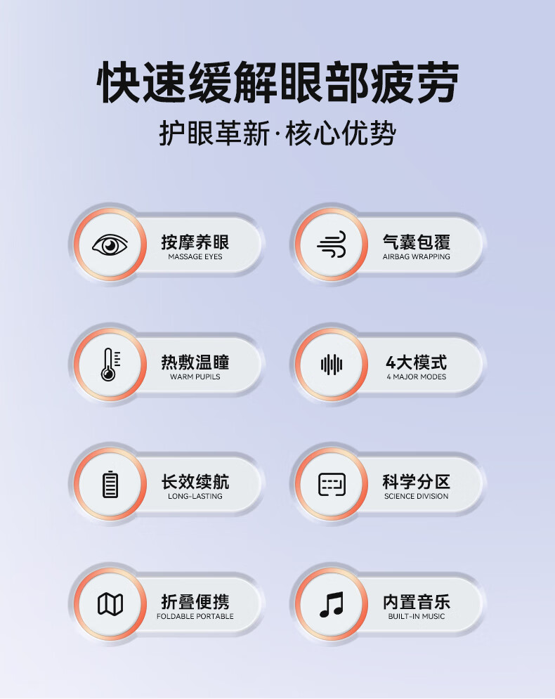 续航:约17次循环 充电时间:2小时±0.5小时 默认工作时间:10min(活力)15min(放松&舒缓)20min(睡眠) 充电电压:5V1A 额定功率:5w 额定电压:3.7V 充电接口:Type-C 电池容量:1200毫安 执行标准:GB4706.1-2005/GB4706.10-2008