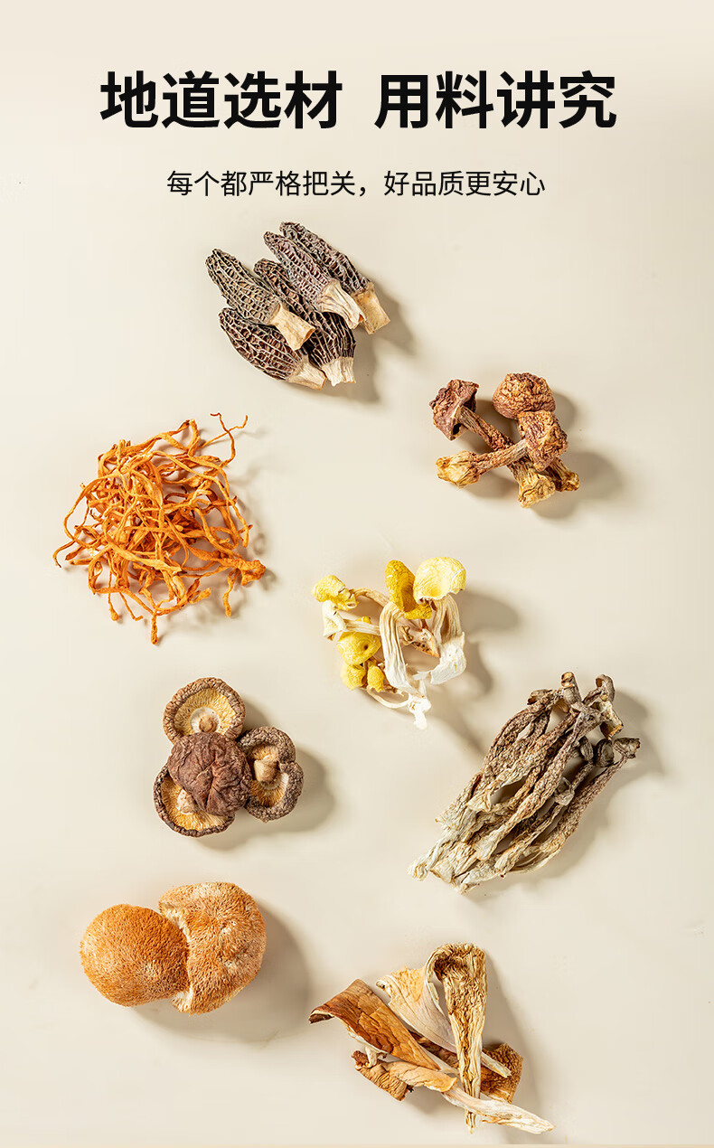产品配置—罐装: 有机白木耳160g 有机滑子菇100g 有机猴头菇90g 有 机 元 蘑100g 有 机 红 枣350g 净含量:800g
