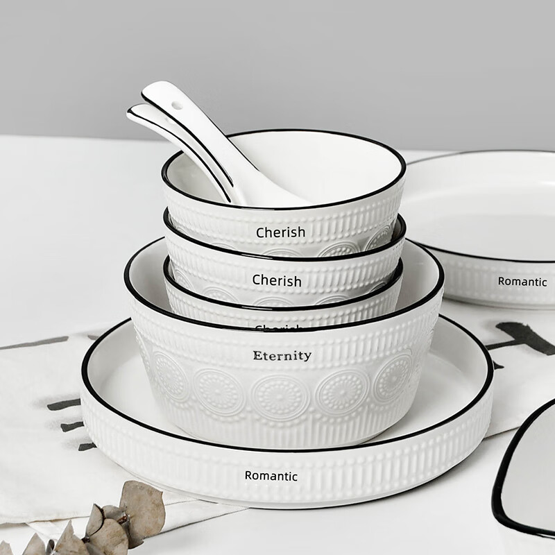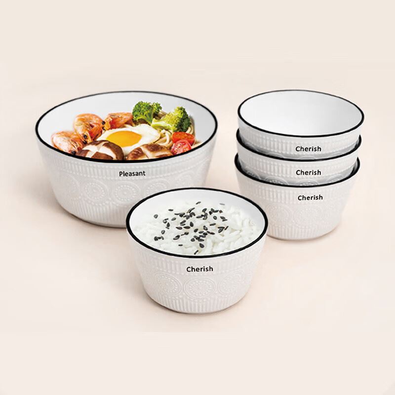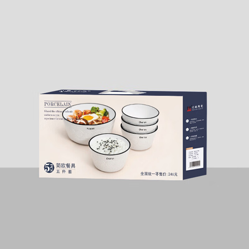 产品材质:陶瓷 产品规格:4.5寸饭碗 * 4 7寸汤碗 * 1 彩盒尺寸:41.8x8.4x23.3