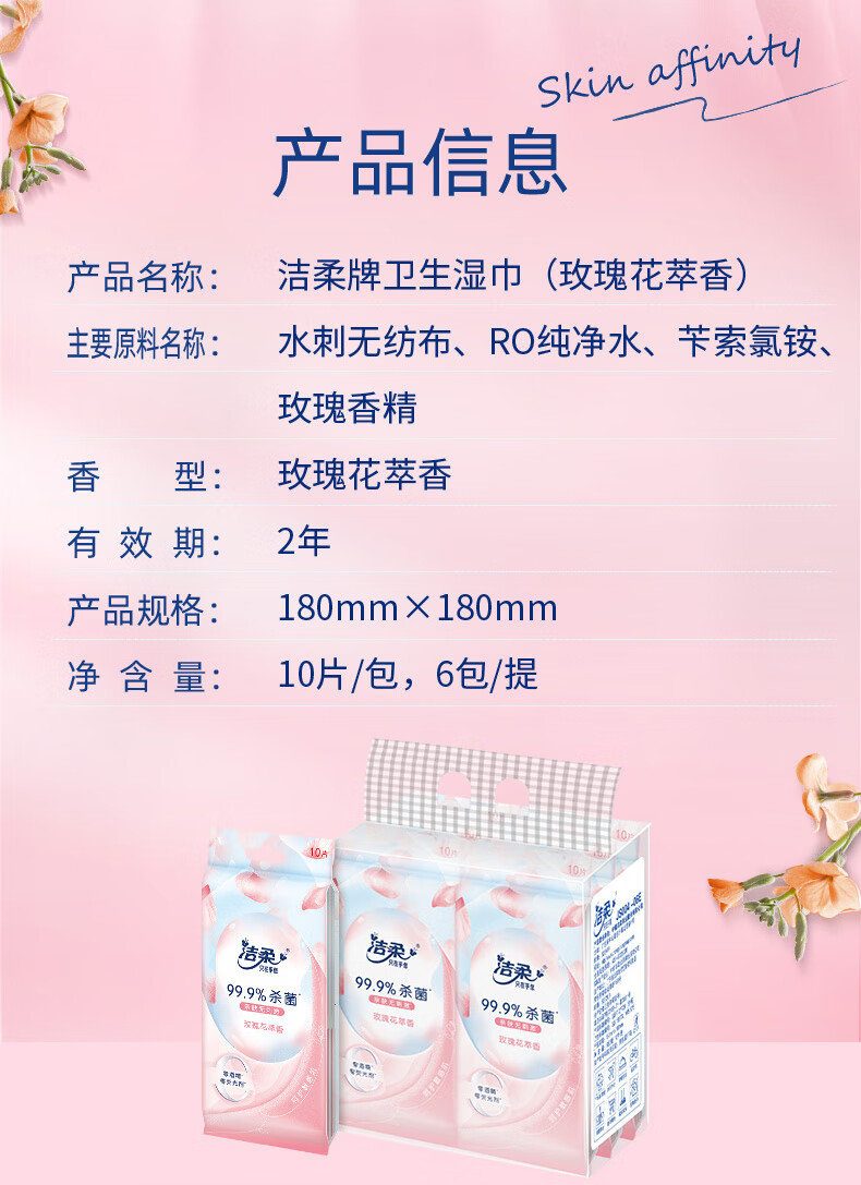 洁柔牌卫生湿巾(玫瑰花萃香)(10片装)独立装