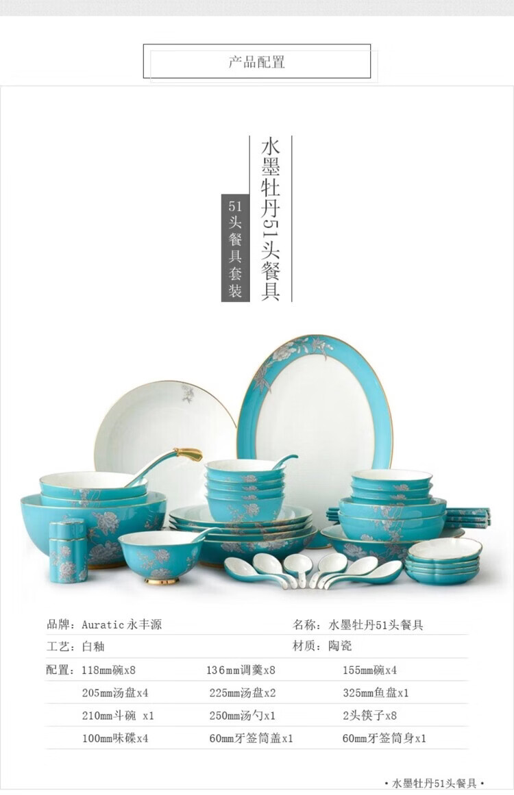 永丰源盛宴瓷·水墨牡丹-51头中餐具(8人位)