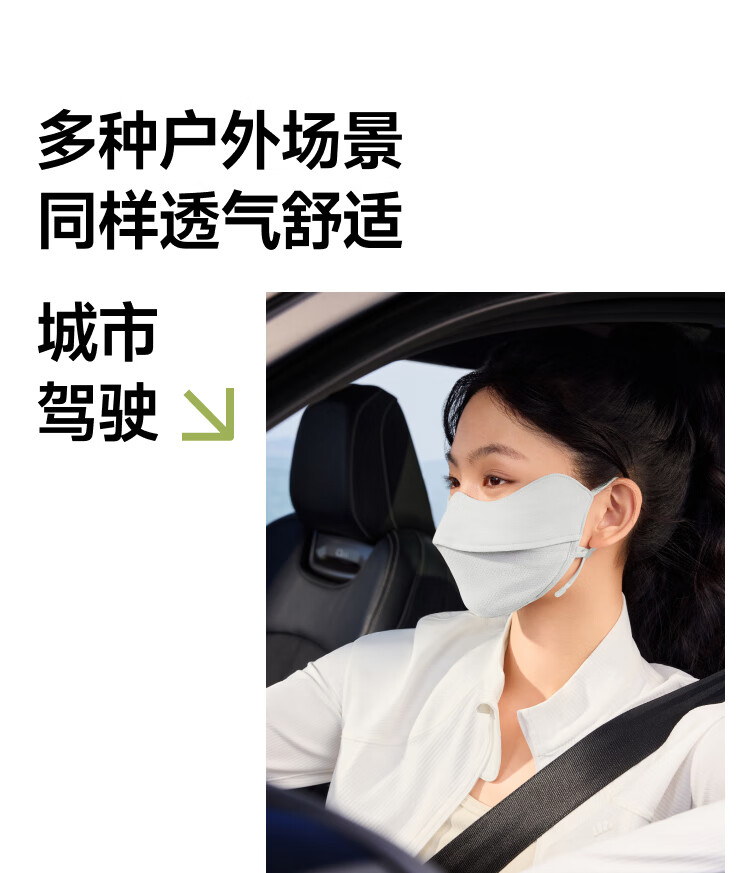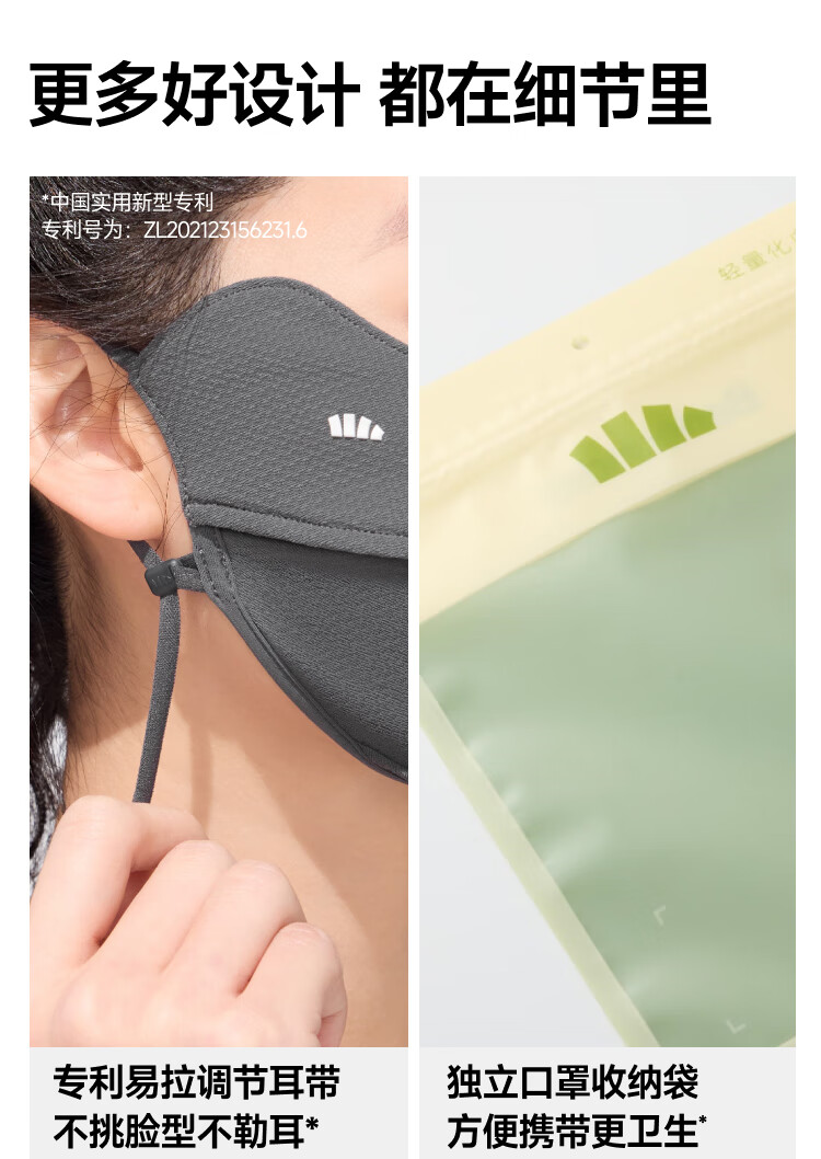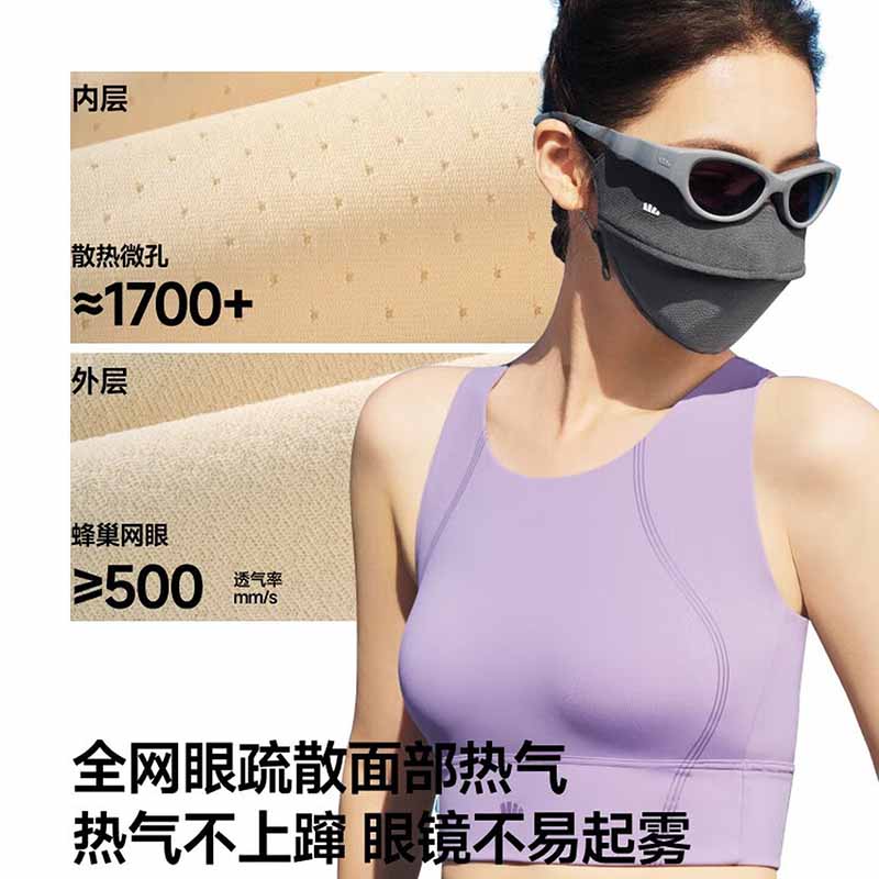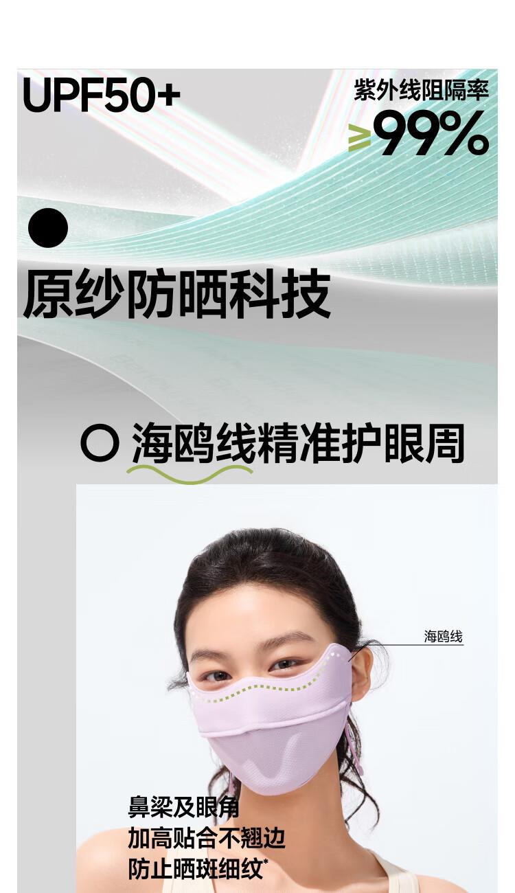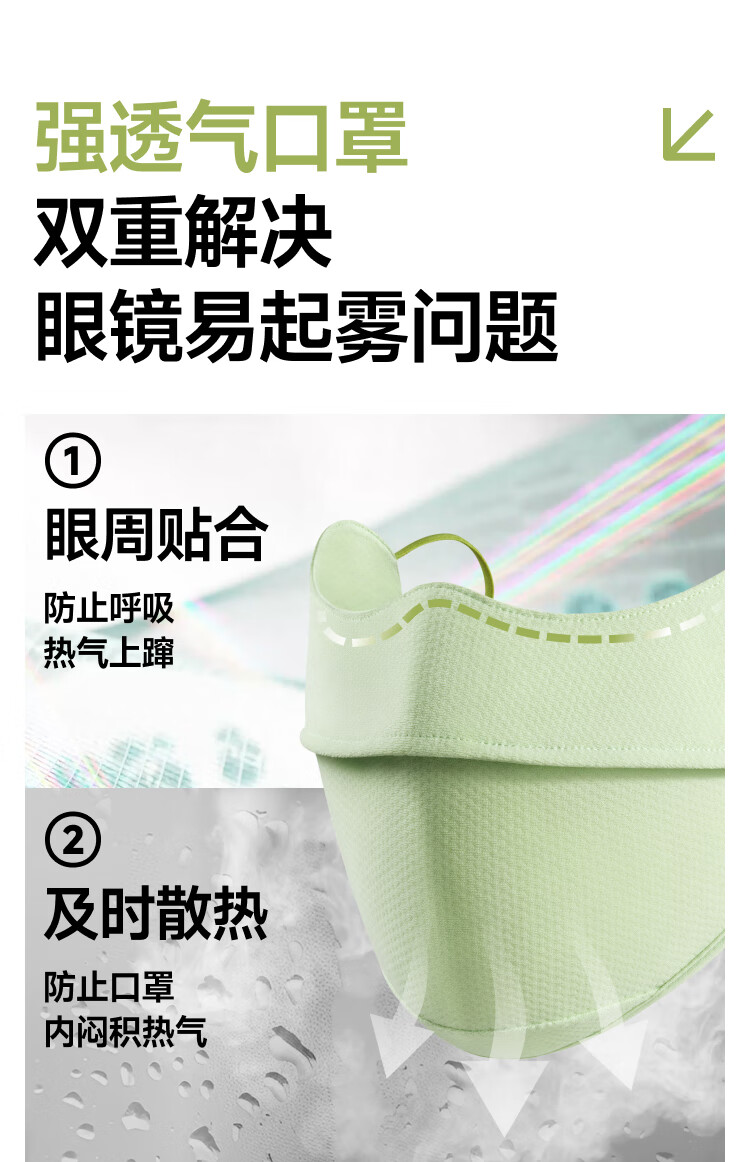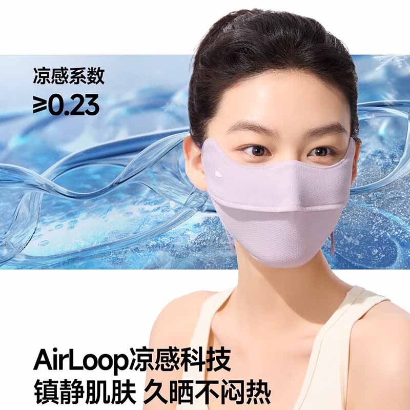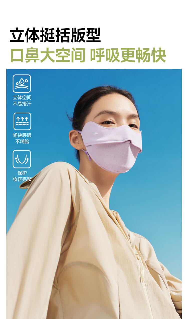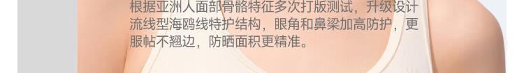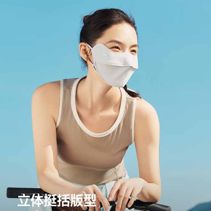三重立体设计、服帖修饰脸型 1.66倍国标凉感 镇 静肌肤、持久透气 透氧云朵纱突破传统冰丝防晒、无惧久晒闷热