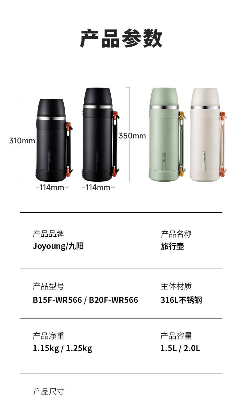 九阳追风户外旅行壶B20F-WR566(黑绿白色)