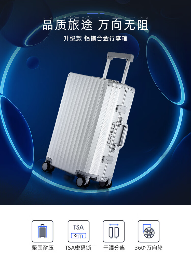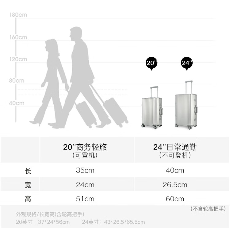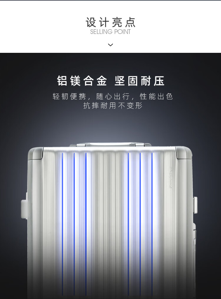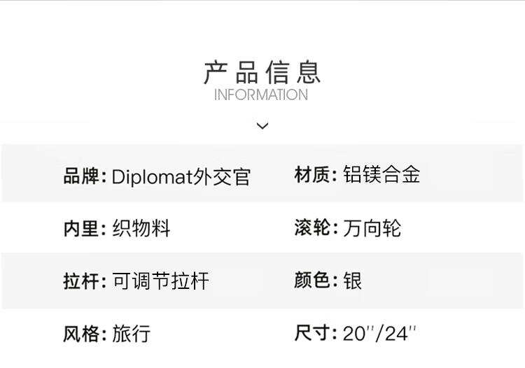 产品材质:铝镁合金 产品颜色:银色 外观尺寸:430*265*655mm /24英寸 产品条码:6958698322642 /24英寸 产品包装:邮购盒