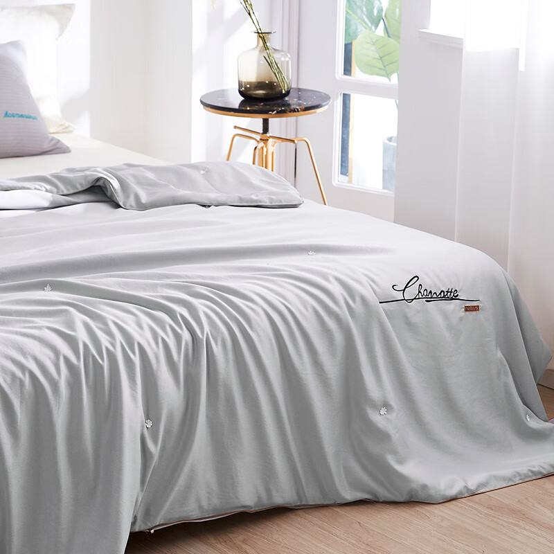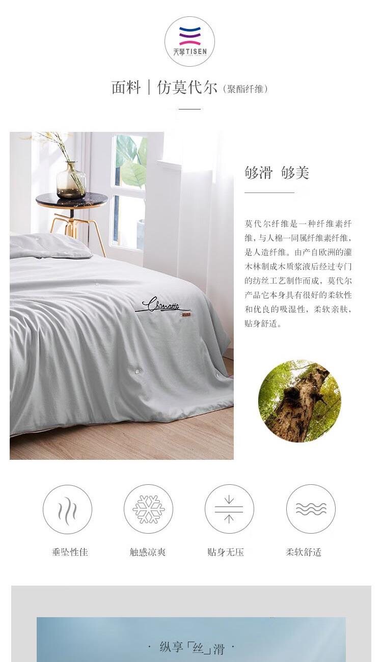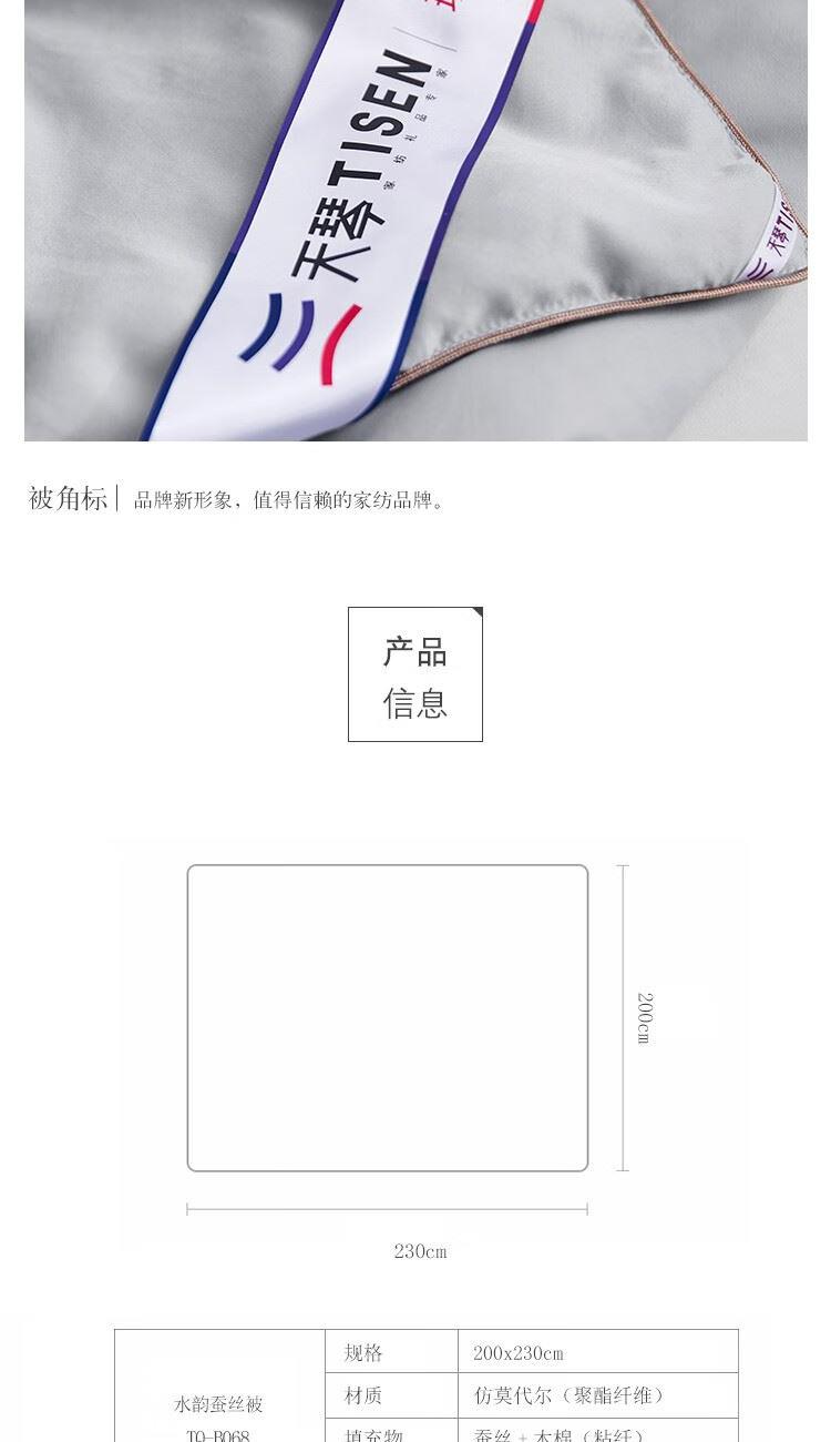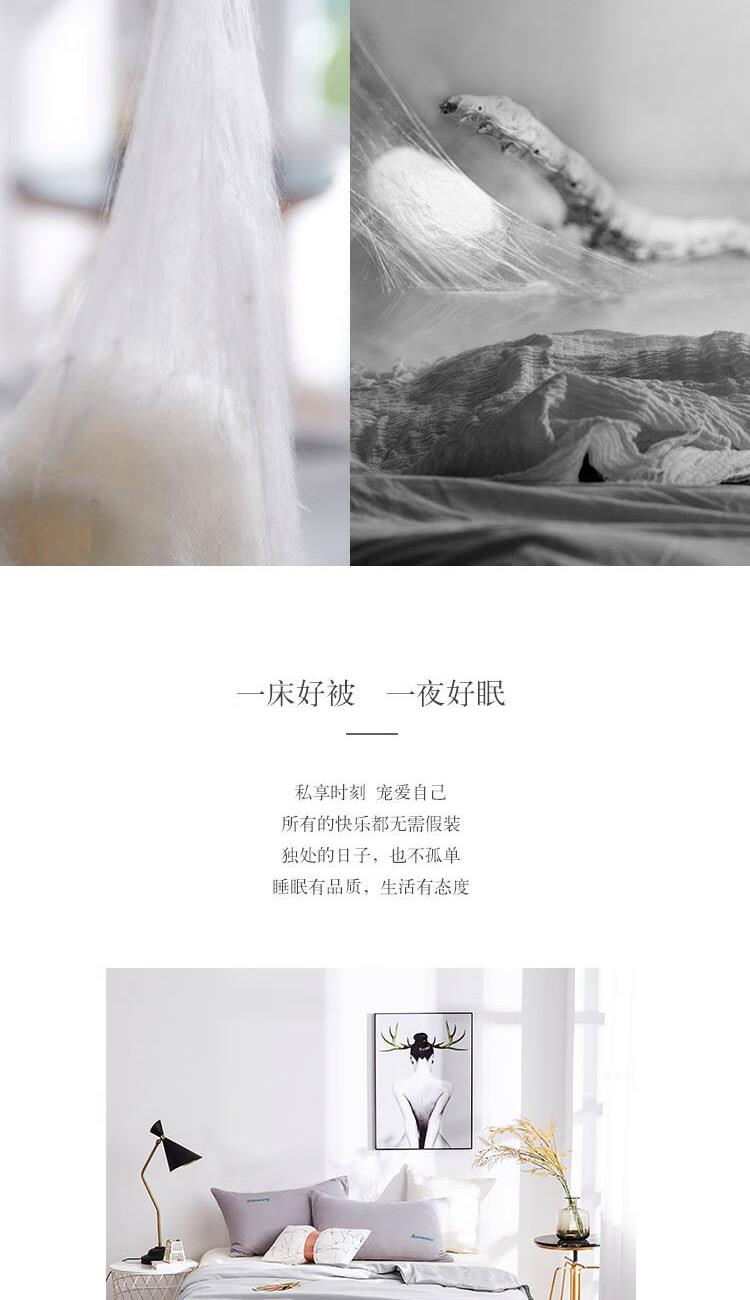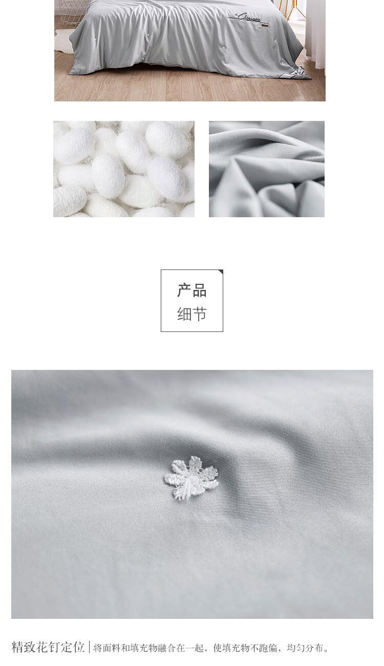 规格:200x230cm 材质:聚酯纤维(仿莫代尔) 填充物:蚕丝+粘纤(木棉) 填充物净重:500g