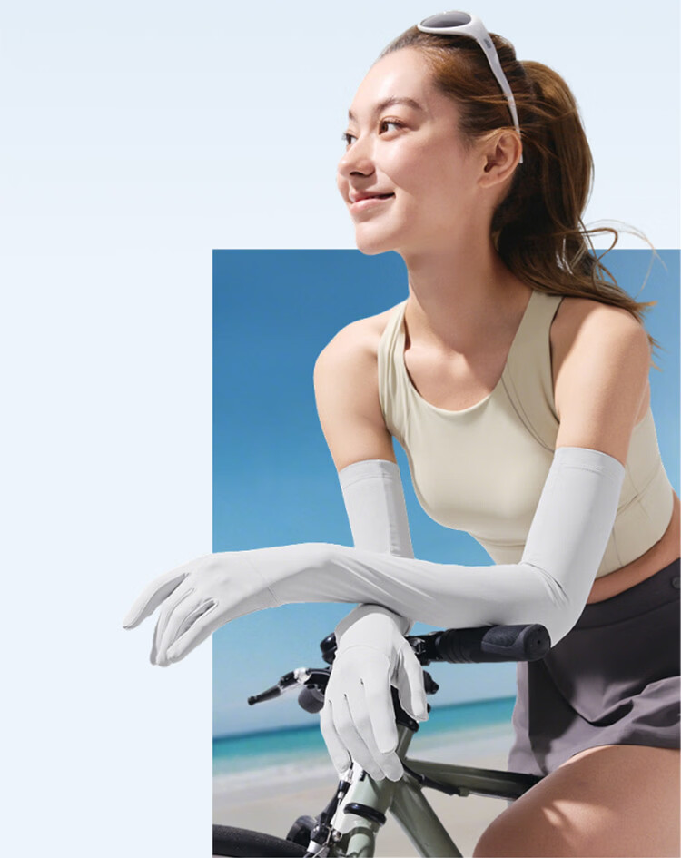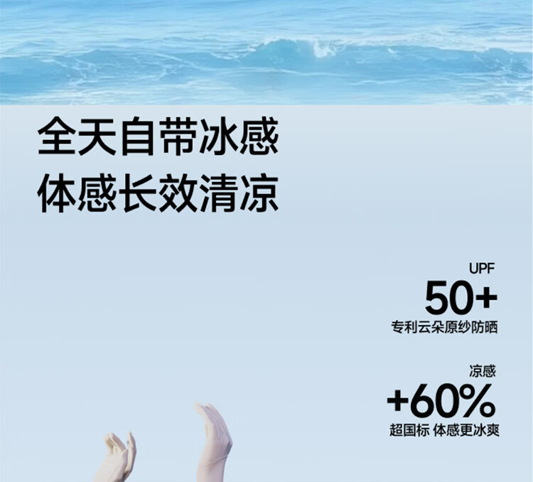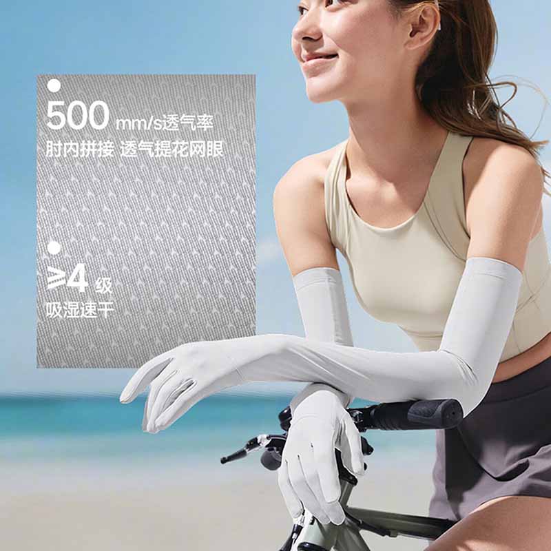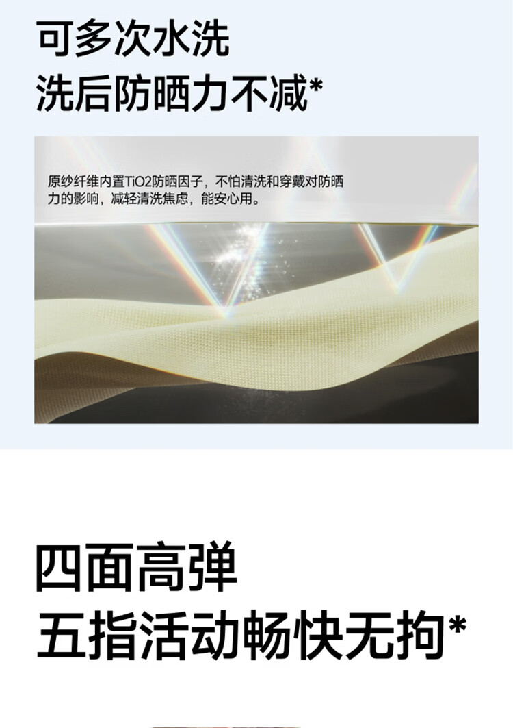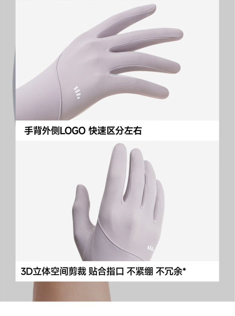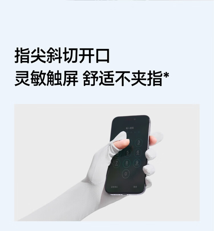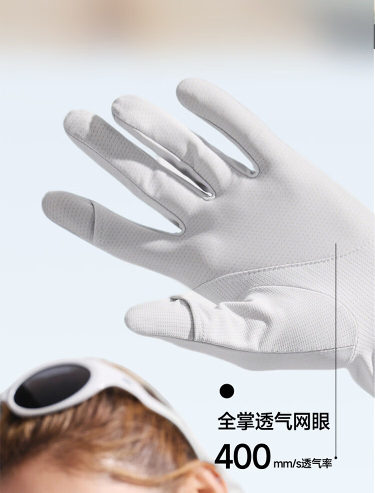 持 久冰爽原纱防晒开指触屏、抓握稳定 UPF50+云朵原纱防晒紫外线阻隔率>99% 便捷手掌结构设计多重场景、一手掌控