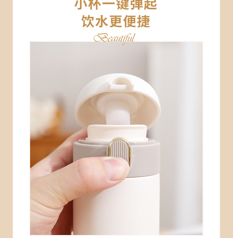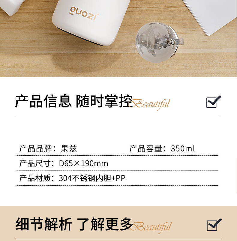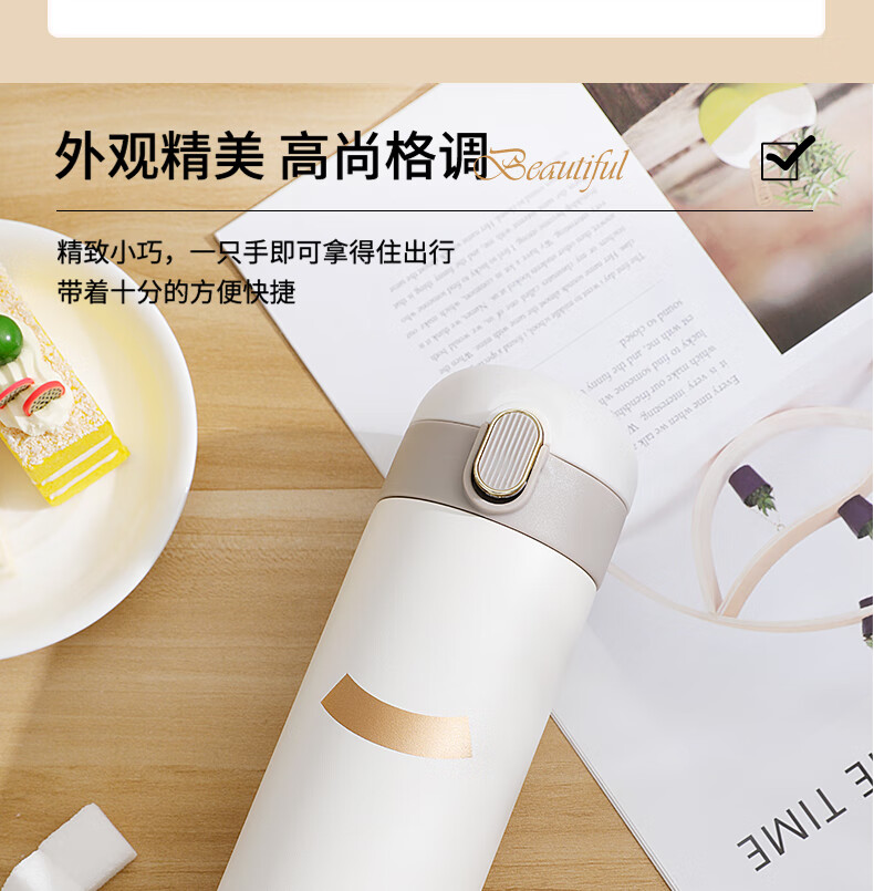 容 量:350ml 尺 寸:D65×190mm 材 质: 304不锈钢内胆+pp 装 箱数量:50只 /箱 产品条码:6932968606199