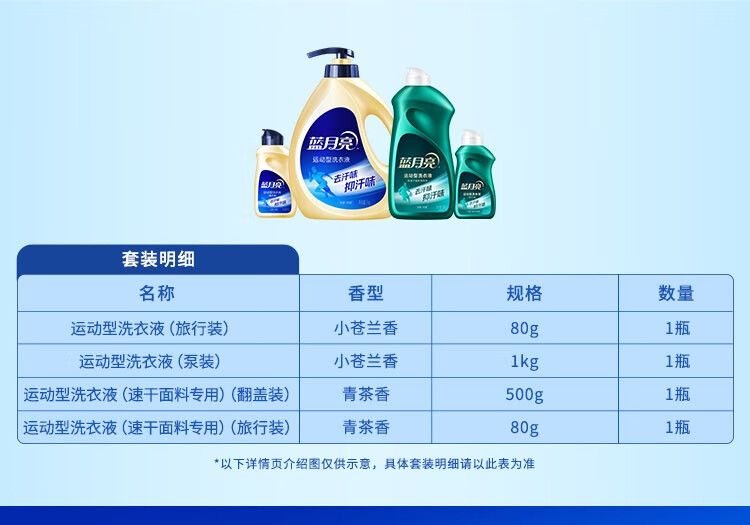 运动洗衣液1kg*1 运动洗衣液80g*1 运动洗衣液速干面料专用500g*1 运动洗衣液速干面料专用80g*1
