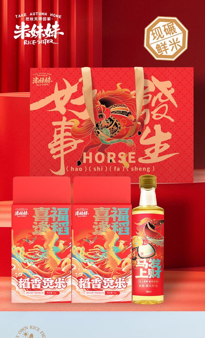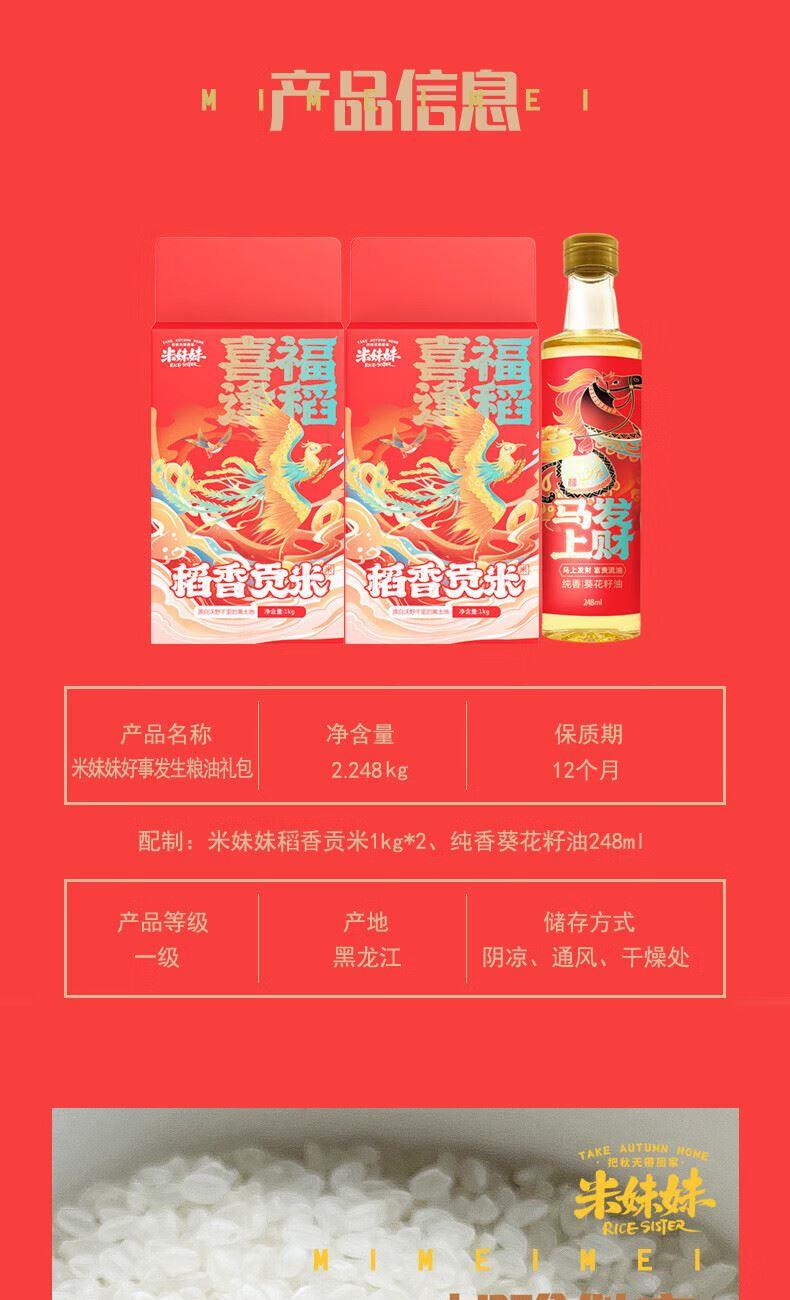 米妹妹稻香贡米1kg*2袋 (马上发财)葵花籽油248ml
