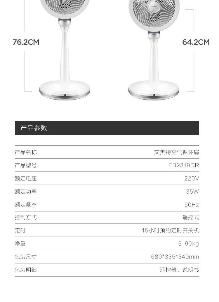 额定电压:220V 额定功率:37W 额定功率:50Hz 控制方式:遥控式 定时:15小时预约定时开机 净重:4.04kg 包装尺寸:680*335*340mm 包装明细:主机,遥控器、说明书