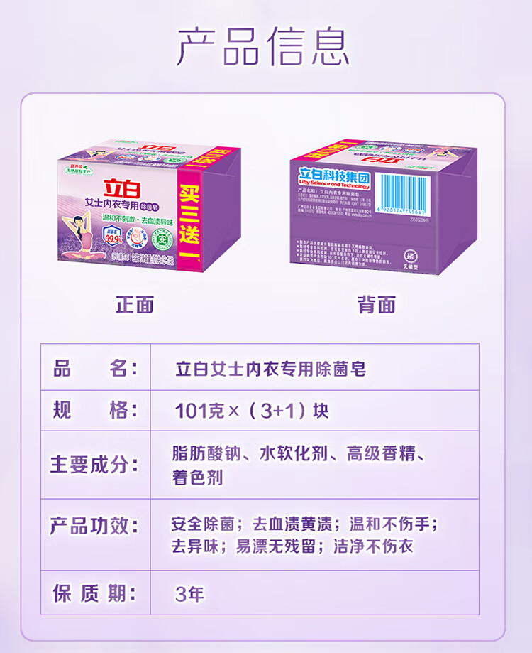 立白内衣专用除 菌皂买三送一101克×(3+1)块家庭特惠装