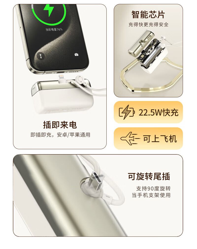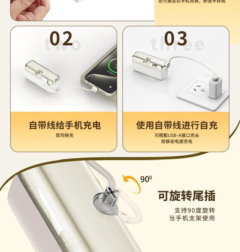 MOYEEO胶囊自带线快充移动电源G63