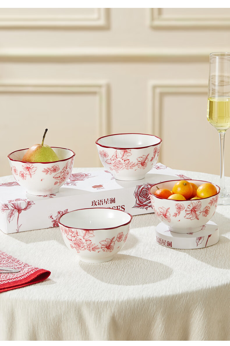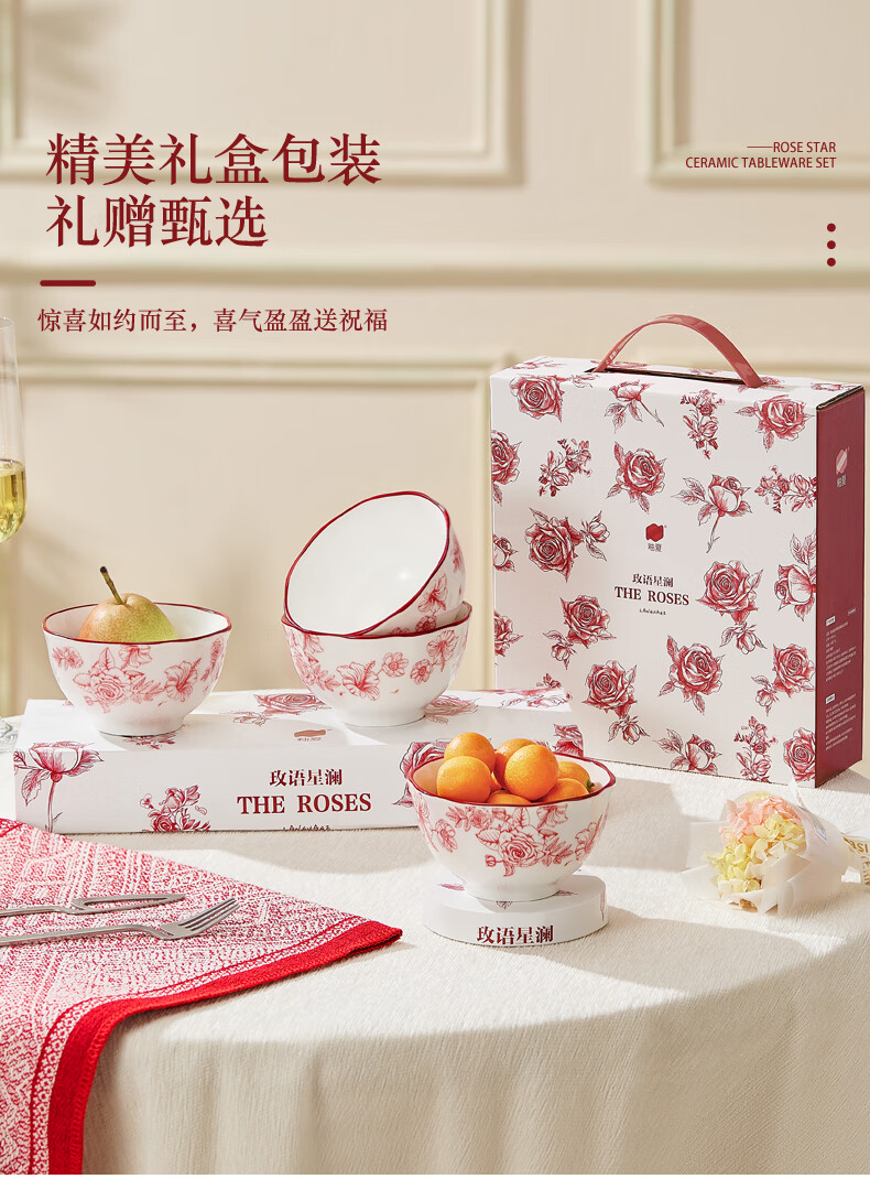 材 质:高温瓷装 箱 规格:16套 /箱产品参数:4.5英寸小碗*4彩盒尺寸: 221*70*238mm 外箱尺寸:46*30*49cm
