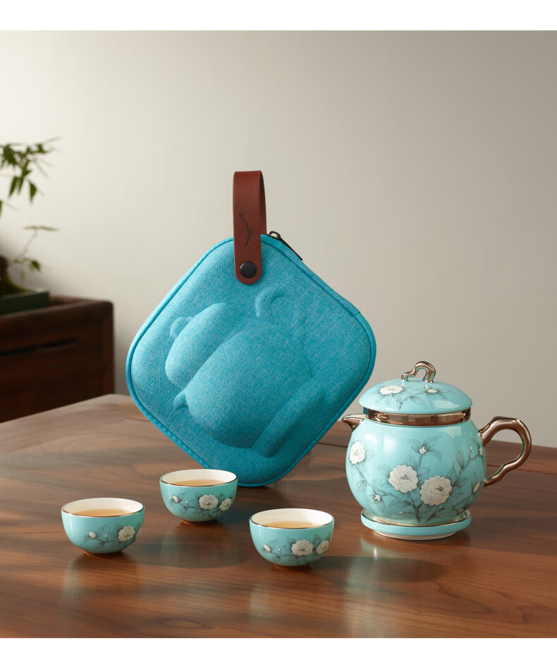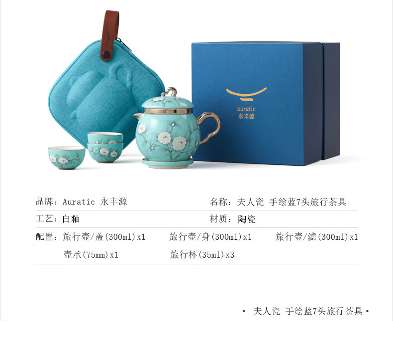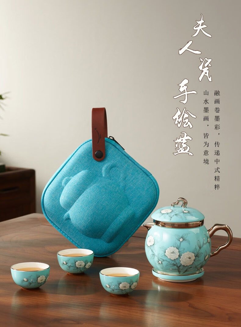 夫人瓷-手绘蓝7头旅行茶具