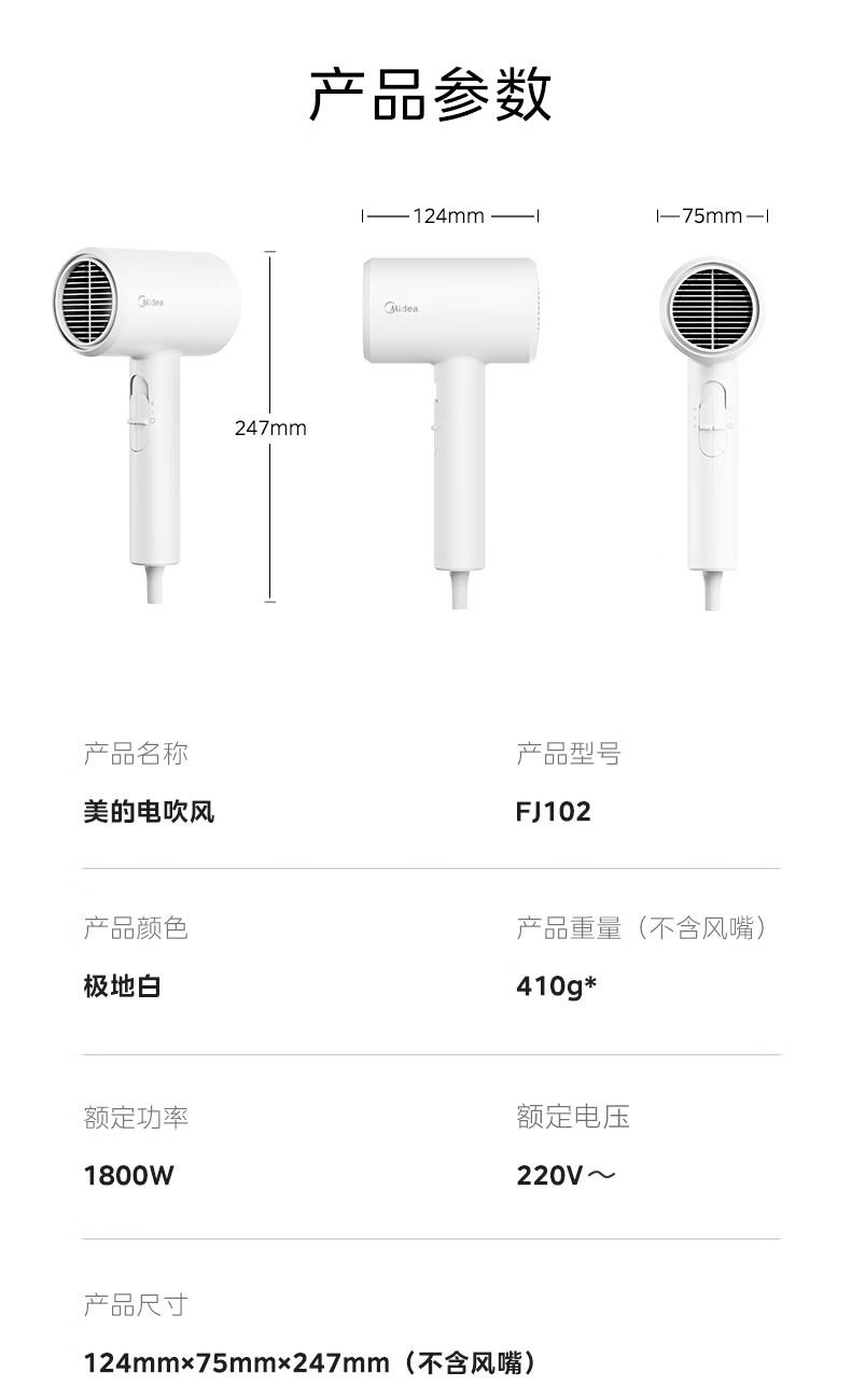 美的电吹风FJ102极地白