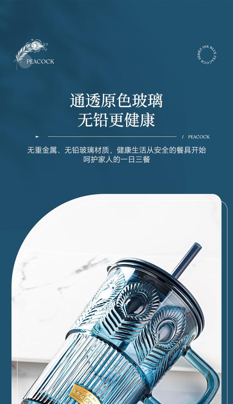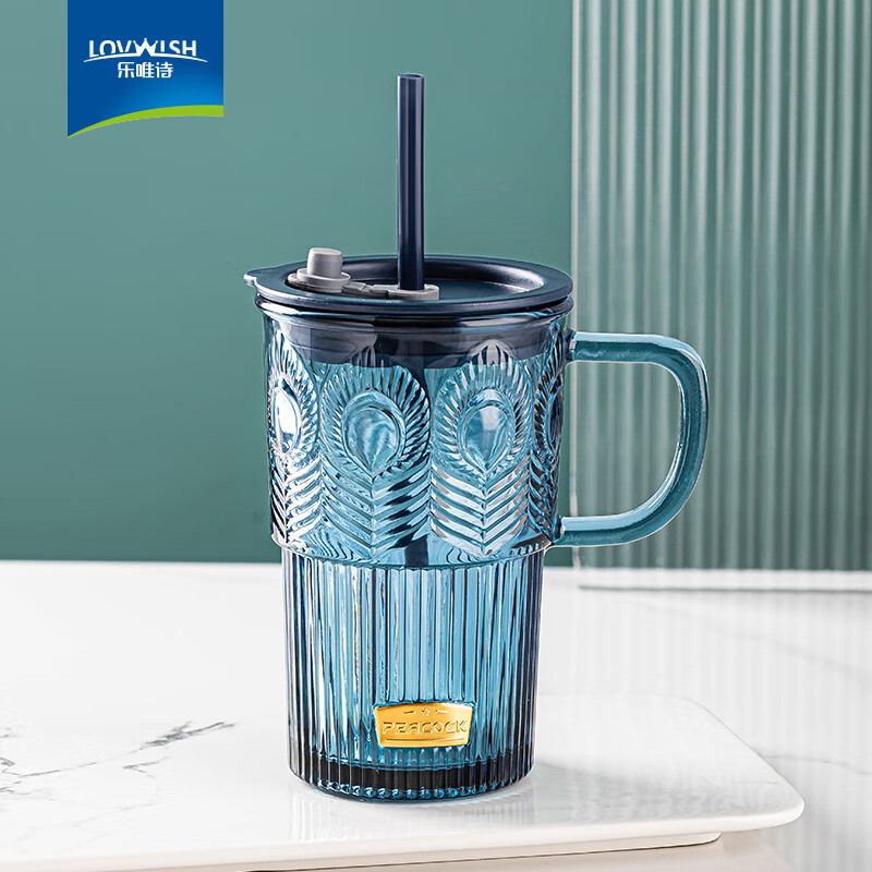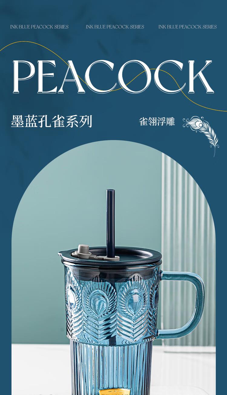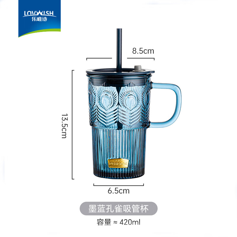 乐唯诗KQLYB/L1墨蓝孔雀翎羽吸管杯