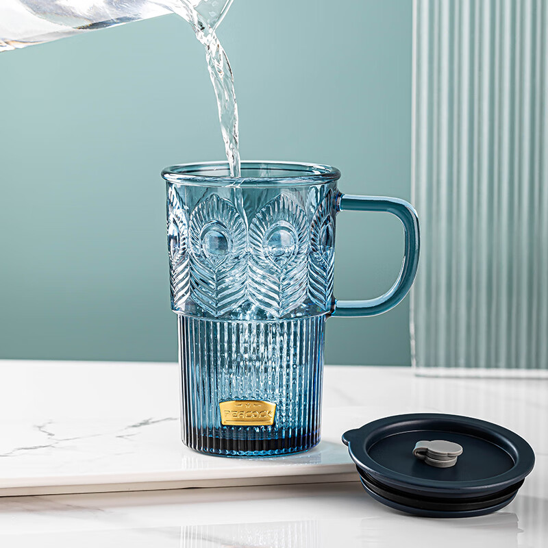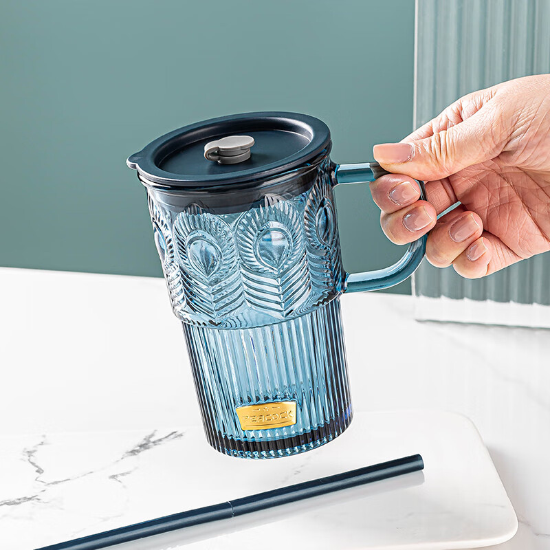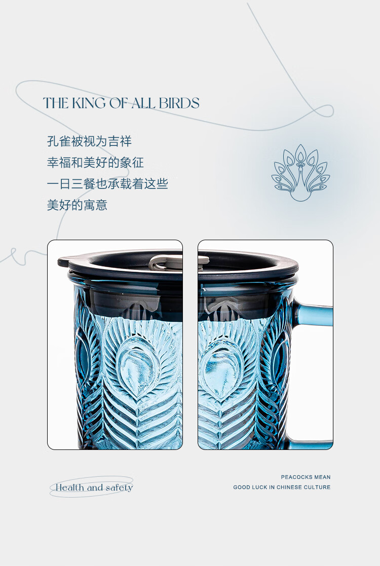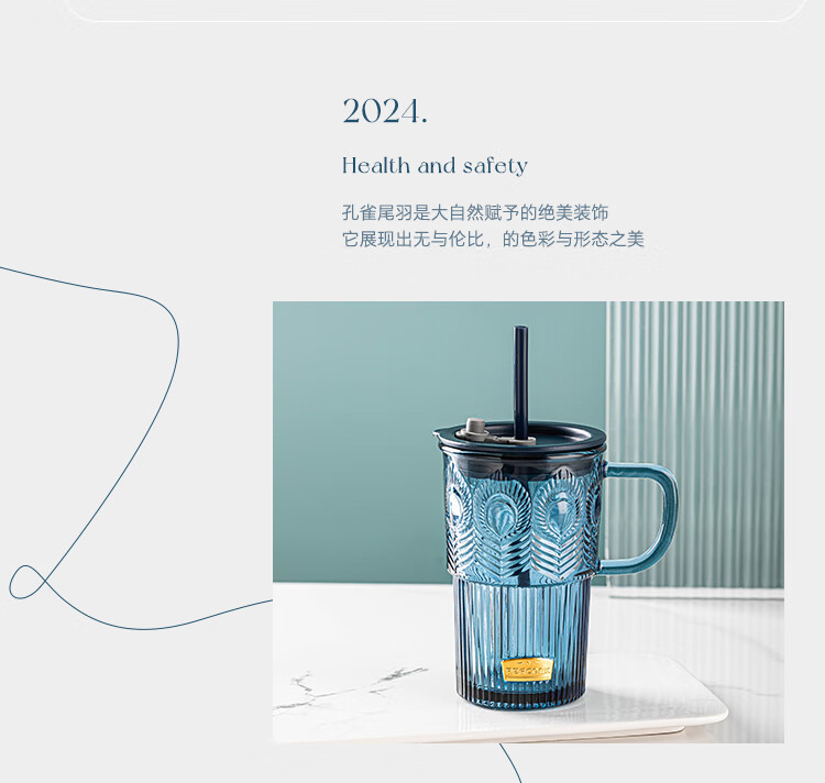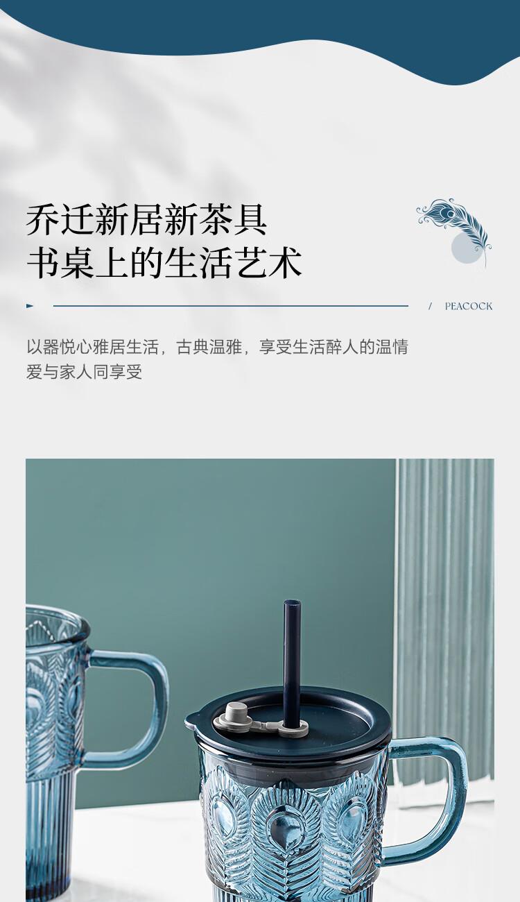 乐唯诗KQLYB/L1墨蓝孔雀翎羽吸管杯