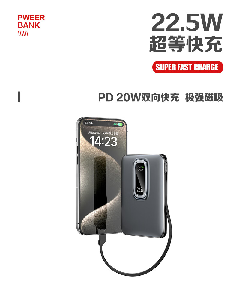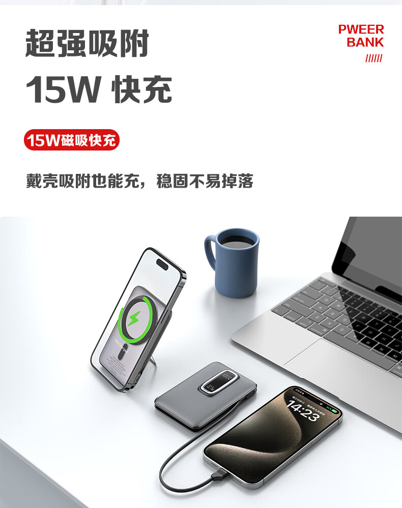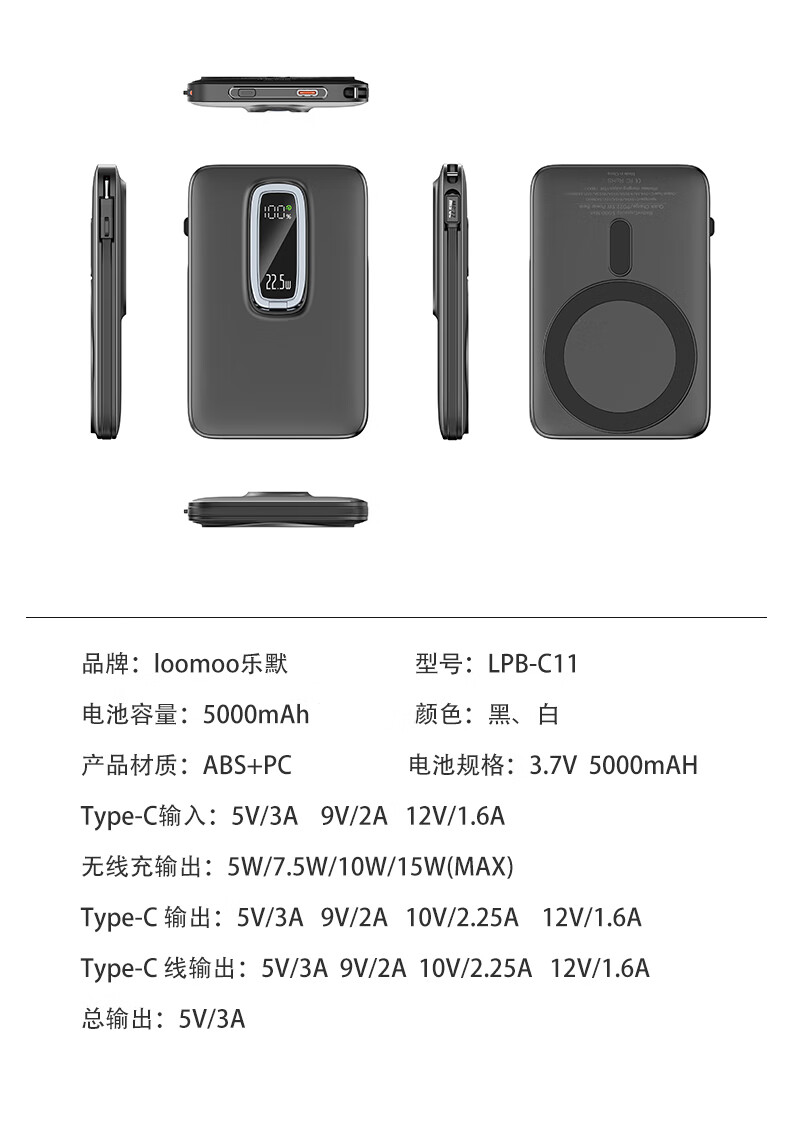 Type-C输入:5V/3A 9V/2A 12V/1.6A 无线充输出:5W/7.5W/10W/15W(MAX)
