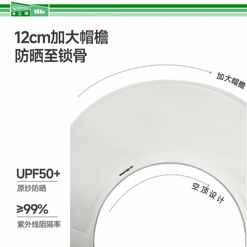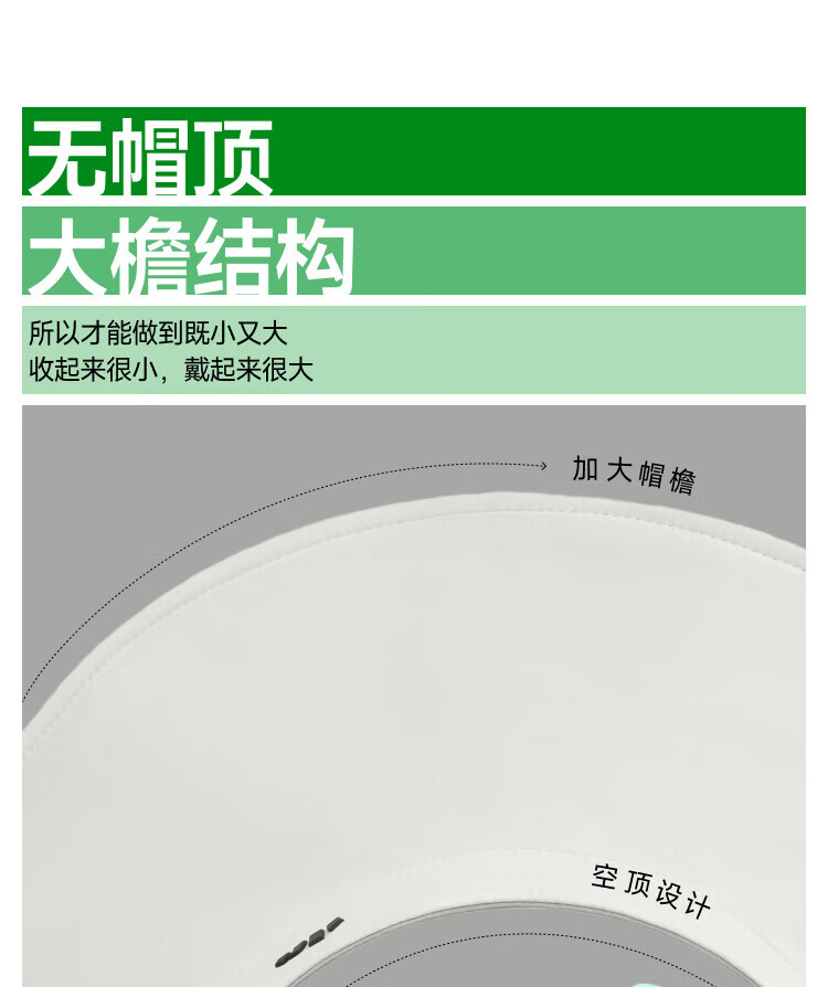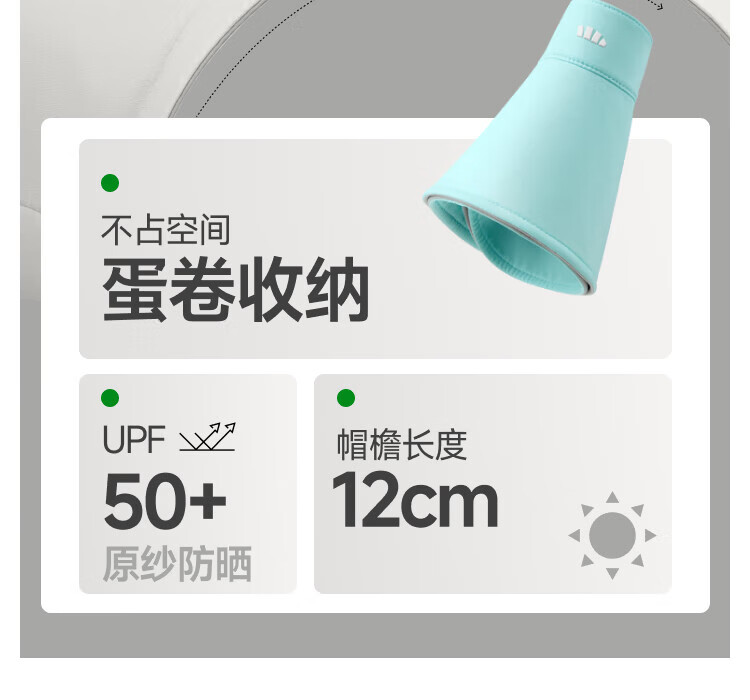 12cm加大帽檐、防晒至锁骨 戴着也没感觉、轻≈58g 轻薄好收纳、包内随行、不占空间
