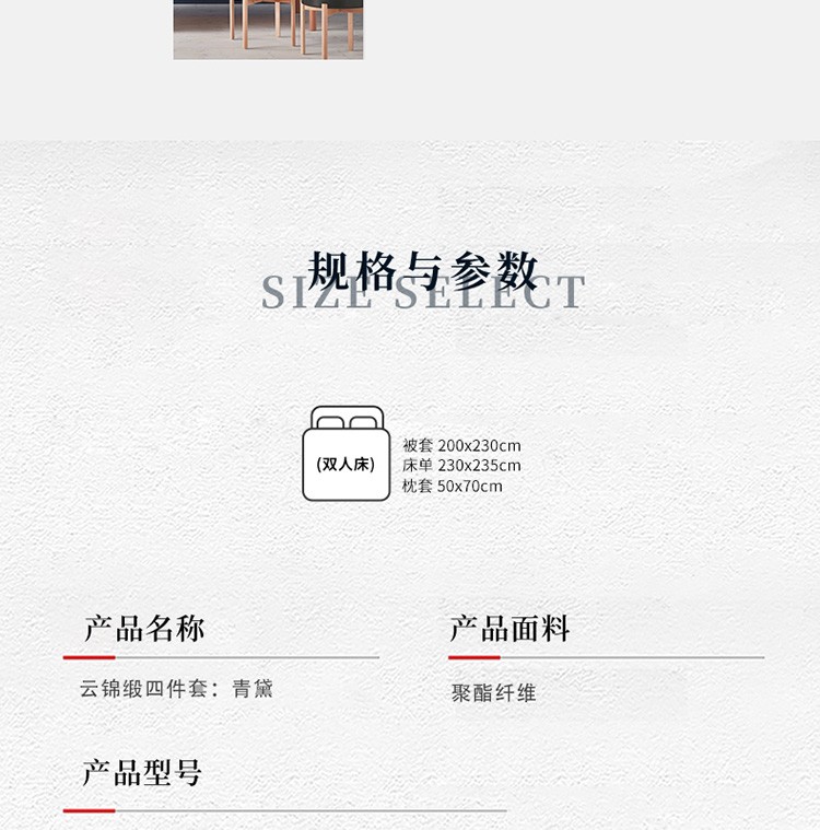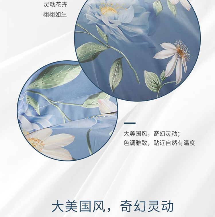 规 格:被套:200*230cm 床单:230*235cm 枕套:50*70cm*2个 面料:聚酯纤维 包 装:红色礼盒+手提袋 条形码:6909338183178