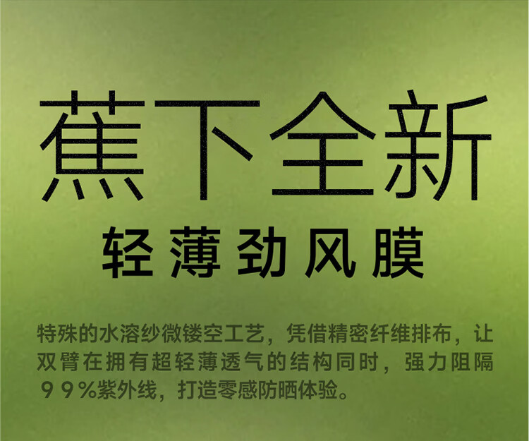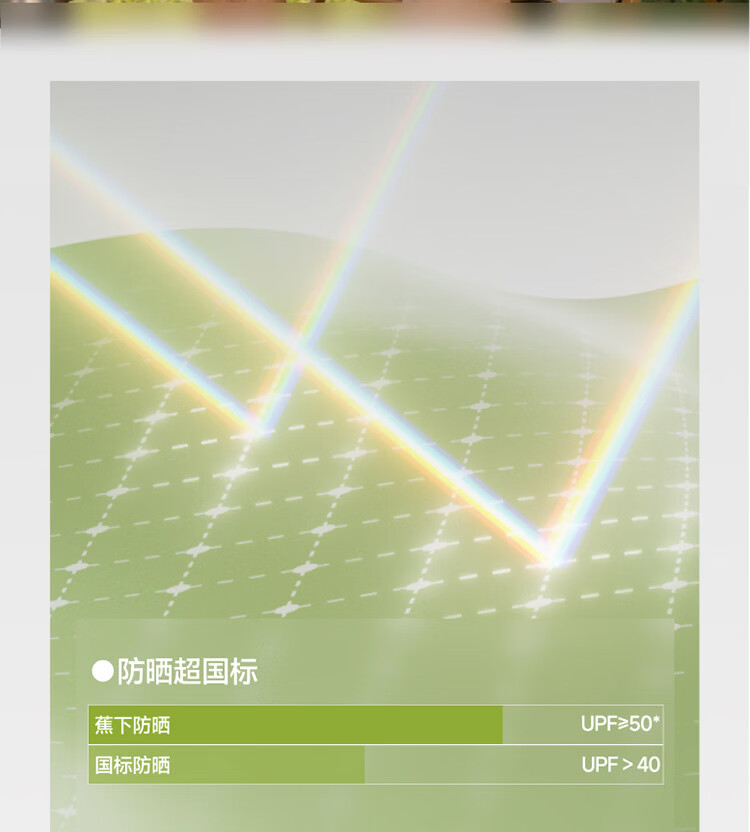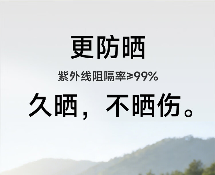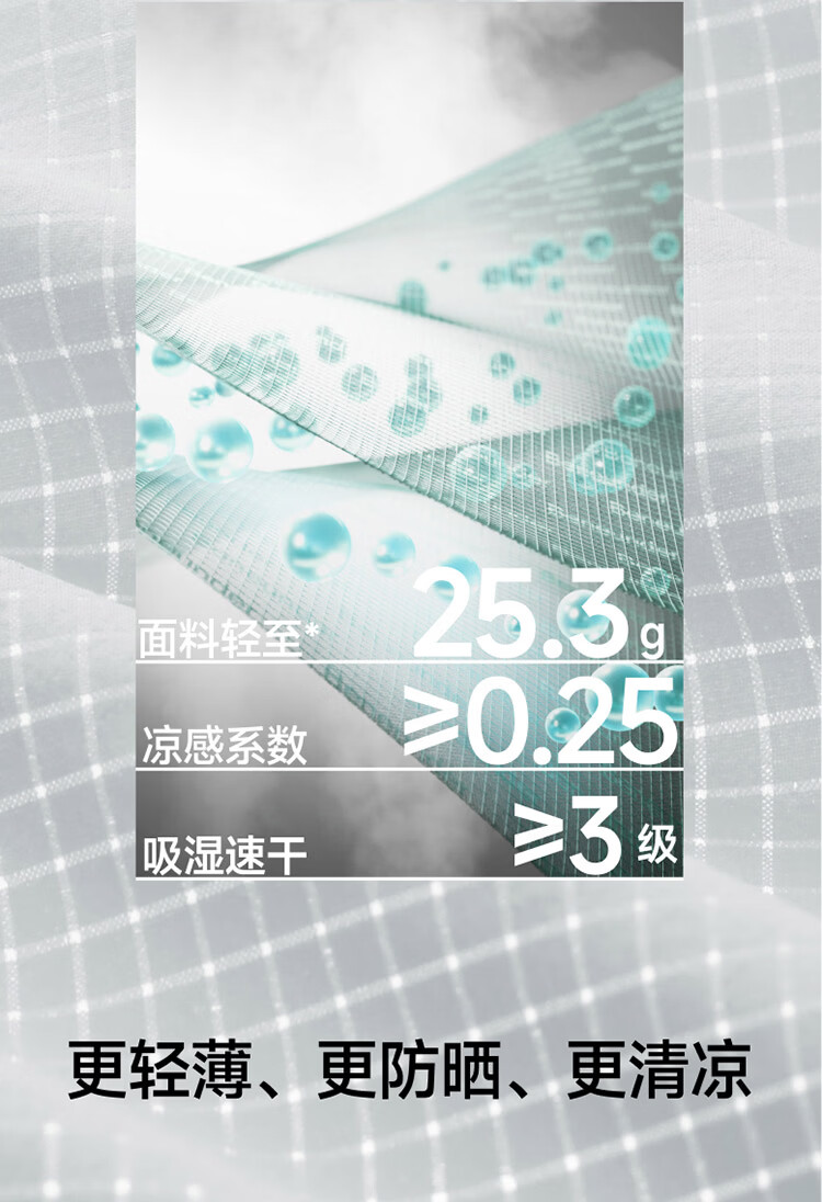 轻薄宽松暴汗不粘腻、秒速凉面料散热更快面料高透气皮肤风感更强、紫外线阻隔率≥99%多次水洗、洗后防晒力不减