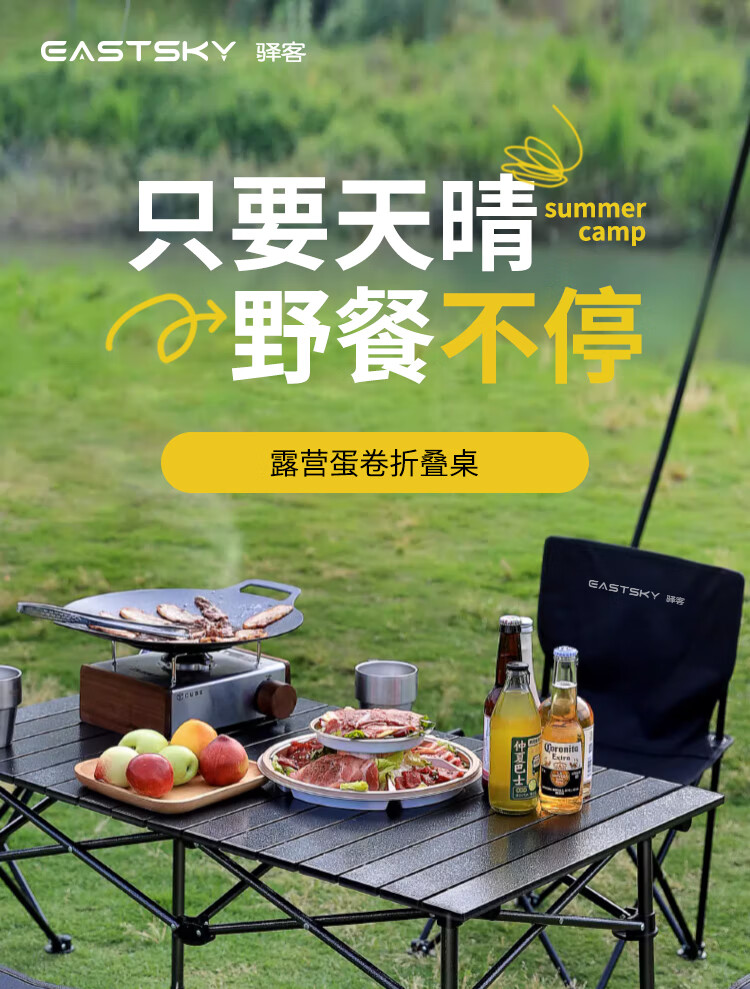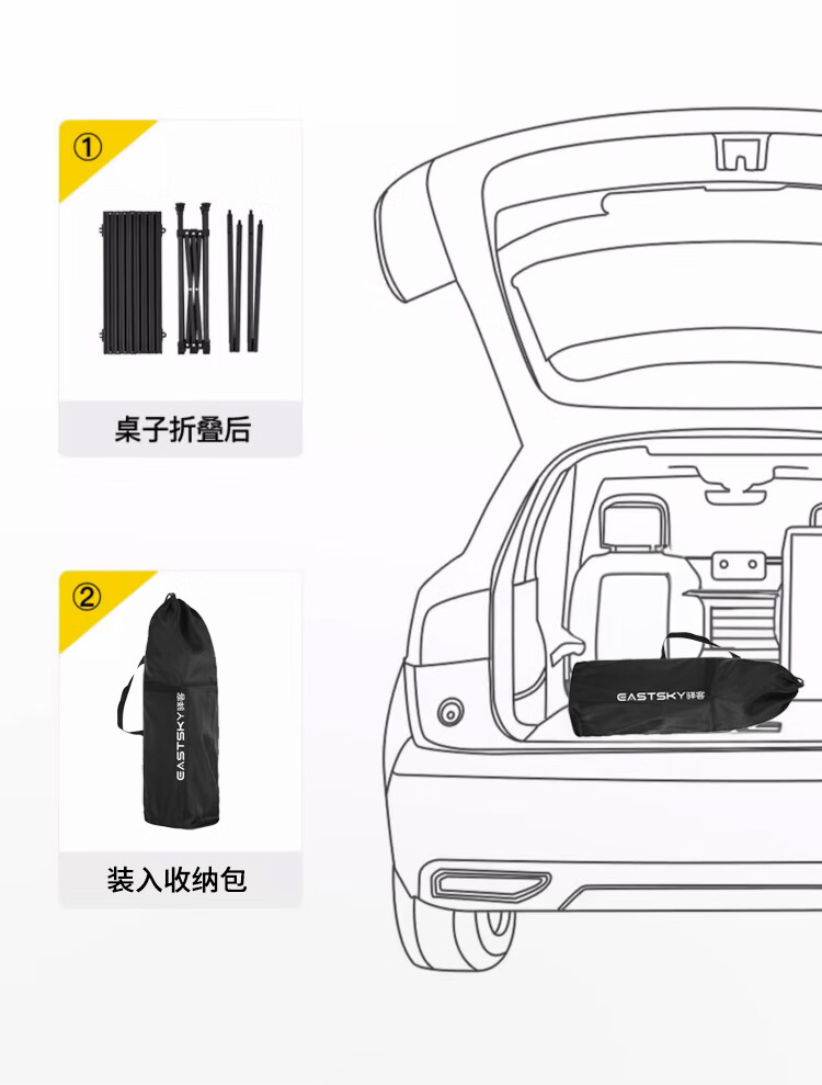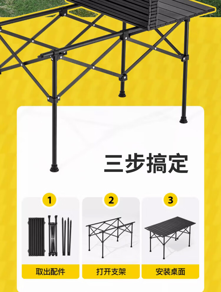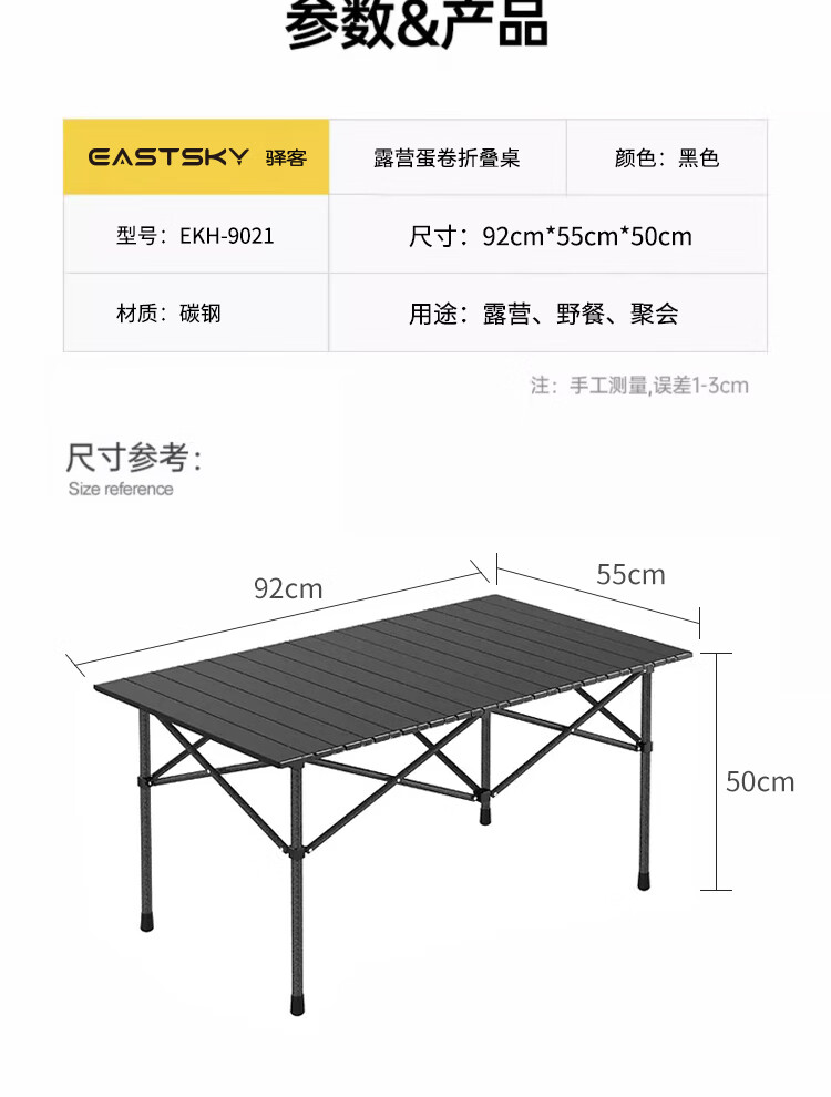 驿客露营蛋卷折叠桌(黑色长桌)EKH-9021