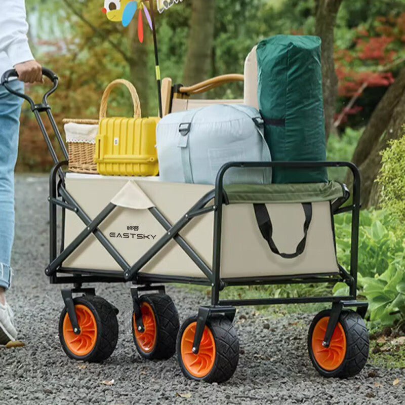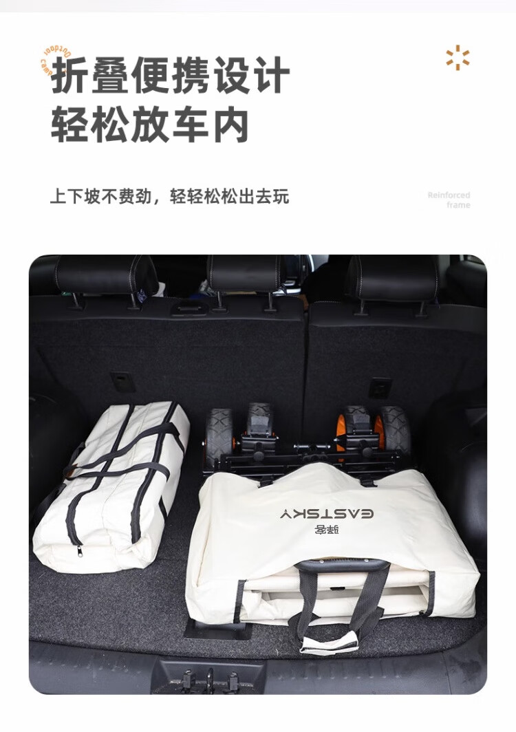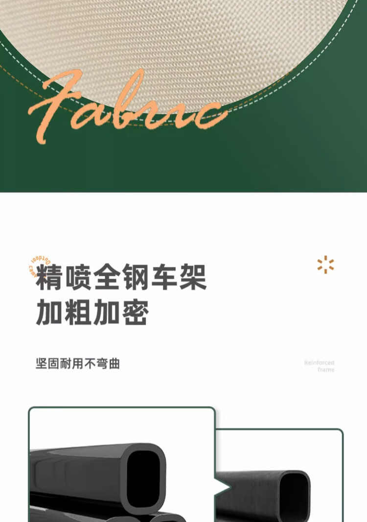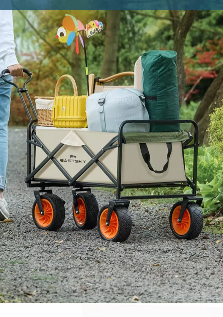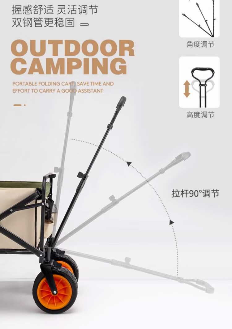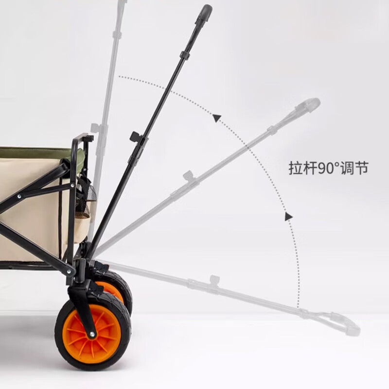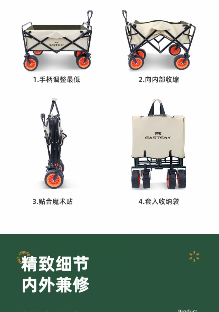 颜色:框架-黑色,布袋-外白内绿 材质:面布-牛津布 车架- 喷塑钢框架 车轮-8寸 PVC(带刹车) 规格尺寸:90*53*74—98cm(展开尺寸) 76*52*20cm(折叠尺寸) 容量:130L