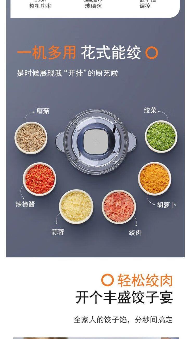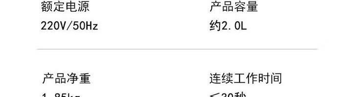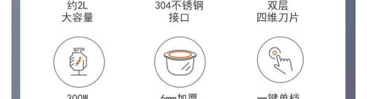 1、全钢机身,高硼硅玻璃杯 2、1.8L大容量,一键单档调控、软硬分档切, 3、300W强力电机, 4、一机多用,厨房好帮手 5、双层四维刀片,304不锈钢接口 6、6MM加厚玻璃碗,操作安全,易拆易清洗,便携 7、肉馅、菜陷、蒜蓉、辣椒酱、辅食 容 量:1.8L 功 率:300W 27000转/分 装 箱:4台 /箱