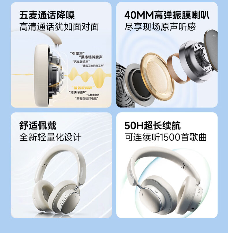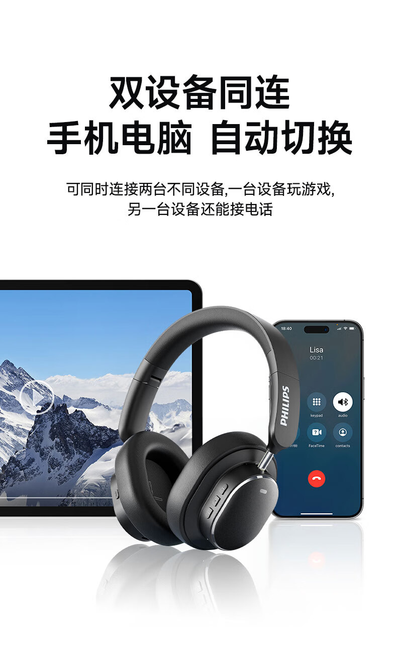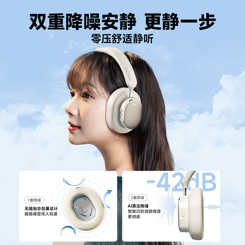 飞利浦(PHILIPS)TAH5519 头戴式无线蓝牙耳机