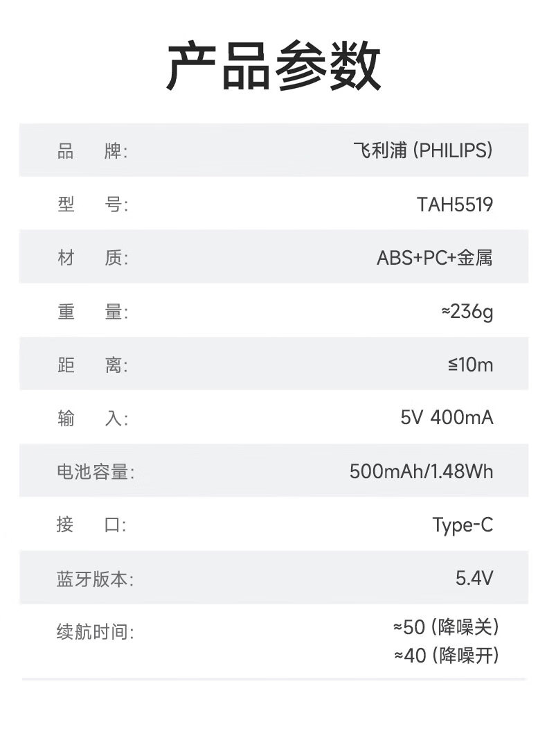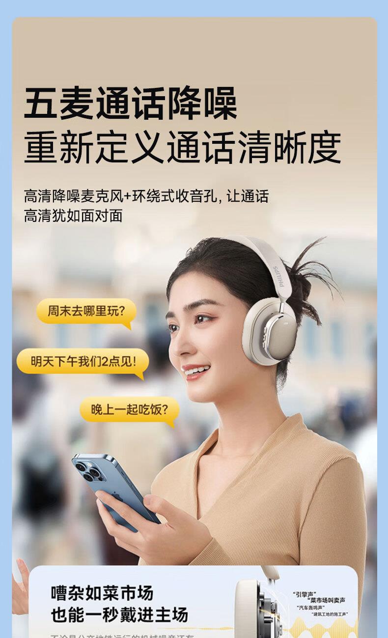 飞利浦(PHILIPS)TAH5519头戴式无线蓝牙耳机