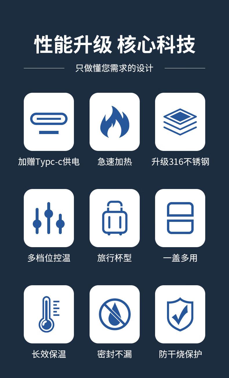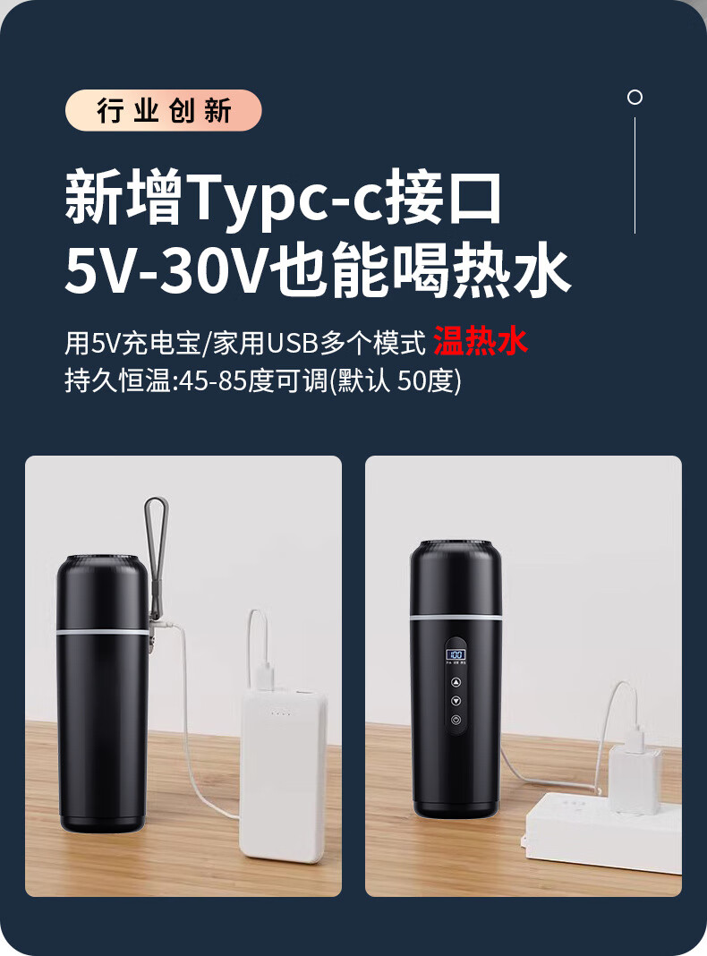 供电方式 DC5V-30V/USB DC12V-30V 电压 5V-12V-24V 12V-24V 温度 30℃-100℃ 功率 100W 功能 加热保温 容量 500ml 材质 不锈钢304 产品颜色 黑色、白色 产品尺寸 235*72mm 产品净重 0.28kg