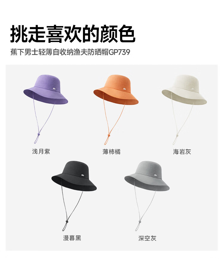 蕉下轻薄自收纳渔夫防晒帽GP739