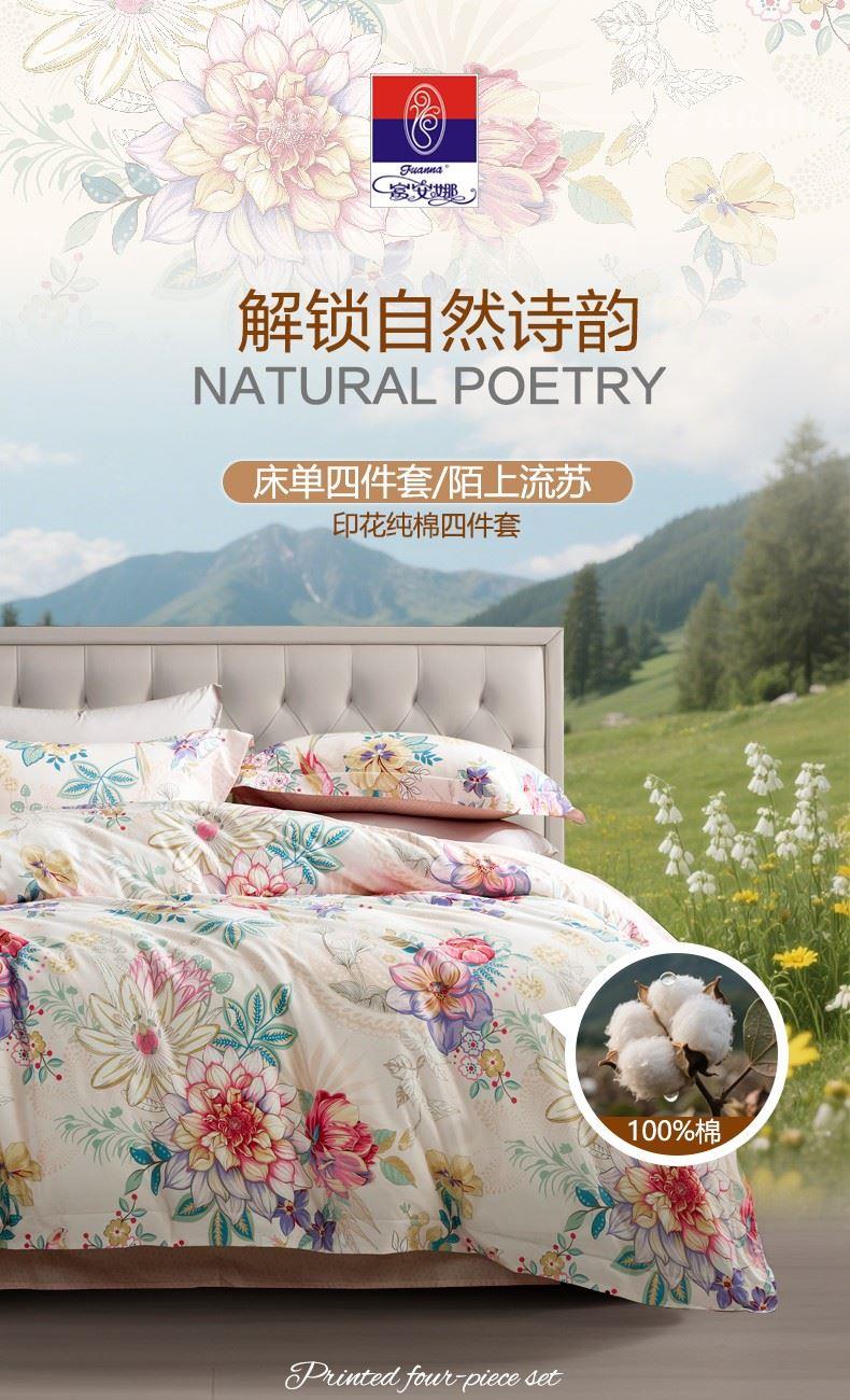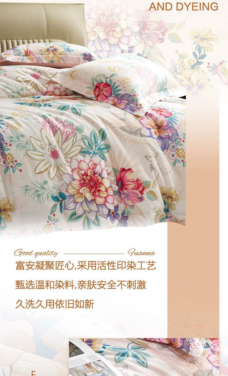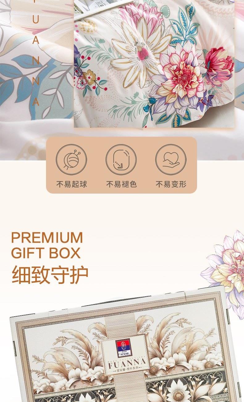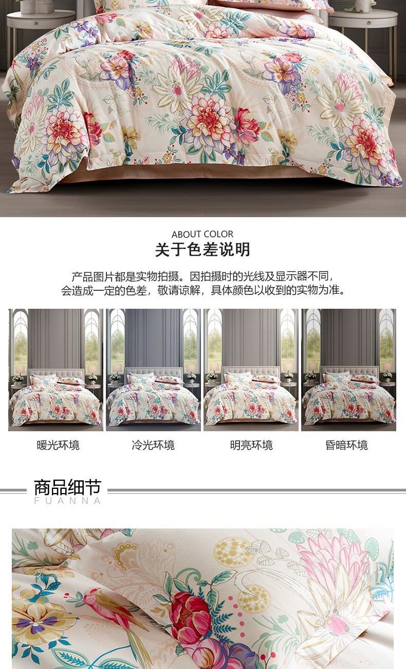 【产品 品 牌】富安娜 【产品材质】纯棉【产品规格】1.5/1.8m床 被套203*229cm*1件 床单230*240cm*1件 枕套74*48cm*2件【产品重量】毛重约2.8kg 净重约2.5kg【包装尺寸】翻盖礼盒55x35x8cm【每 箱 数量】5套