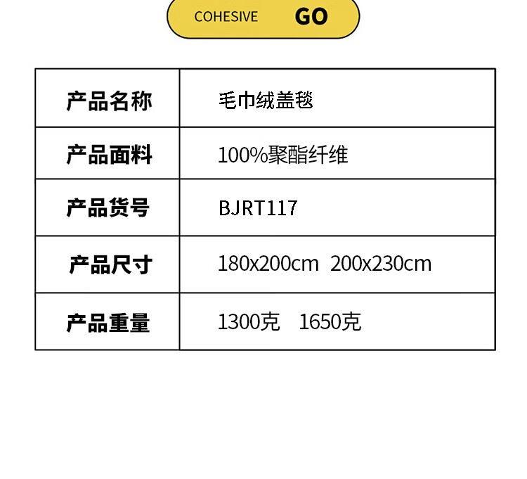 北极绒BJRT117毛巾绒盖毯200x230cm