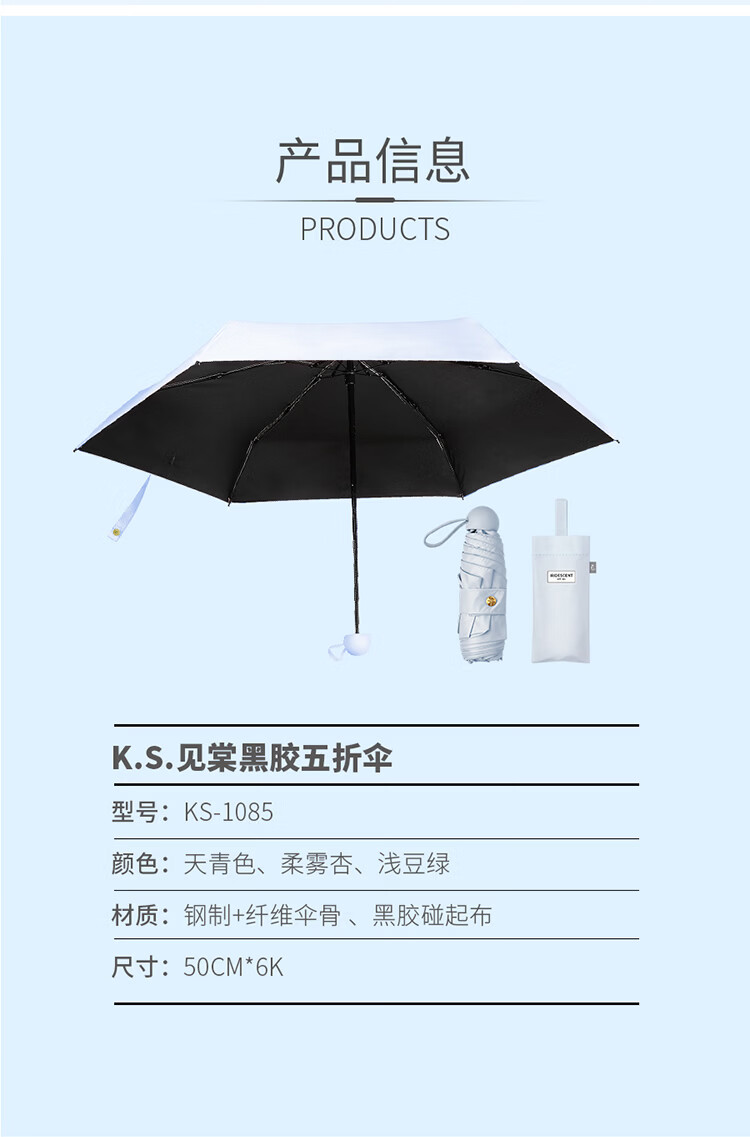K.S.见棠黑胶五折伞KS-1085