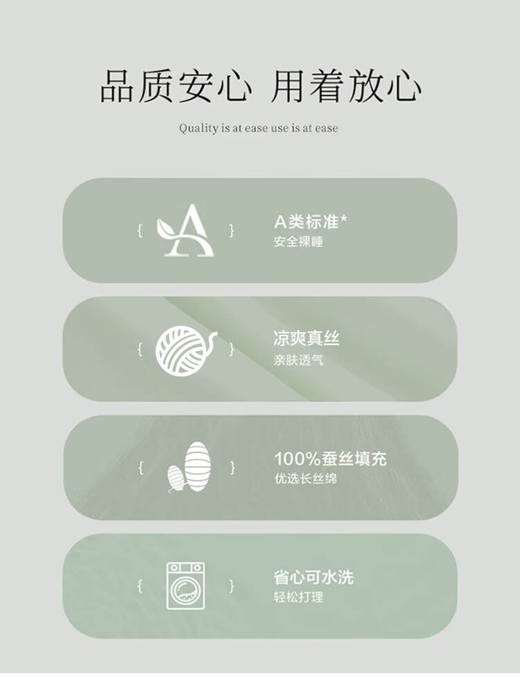 面 料: 凉爽真丝 填 充: 100 %蚕丝(长丝) 规 格: 200*230cm 填充重量: 500g 包 装: 皮包