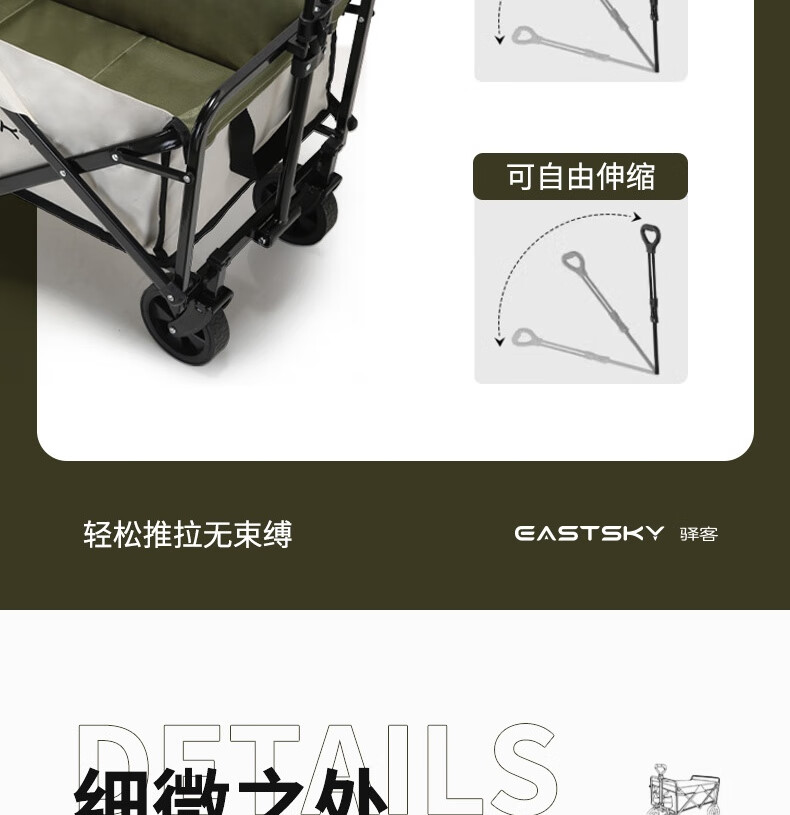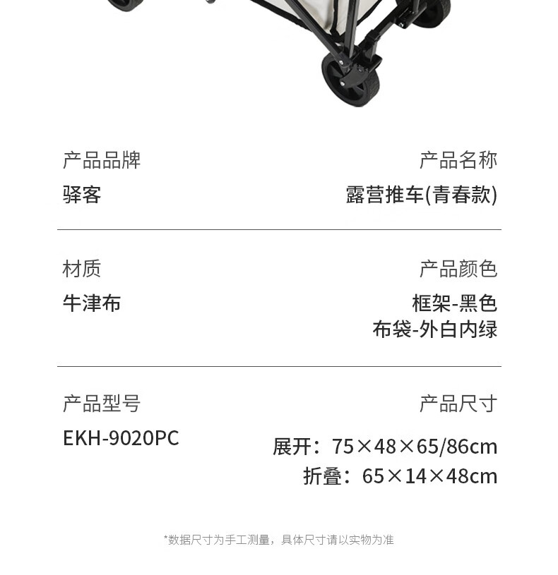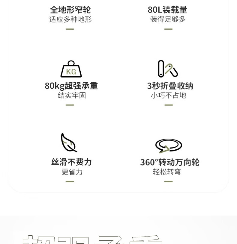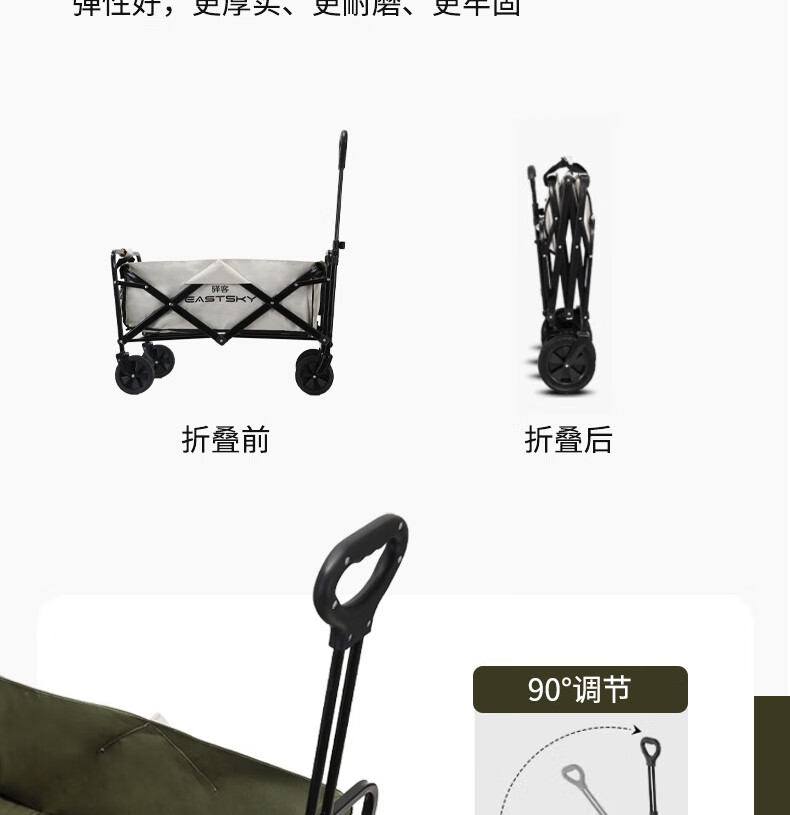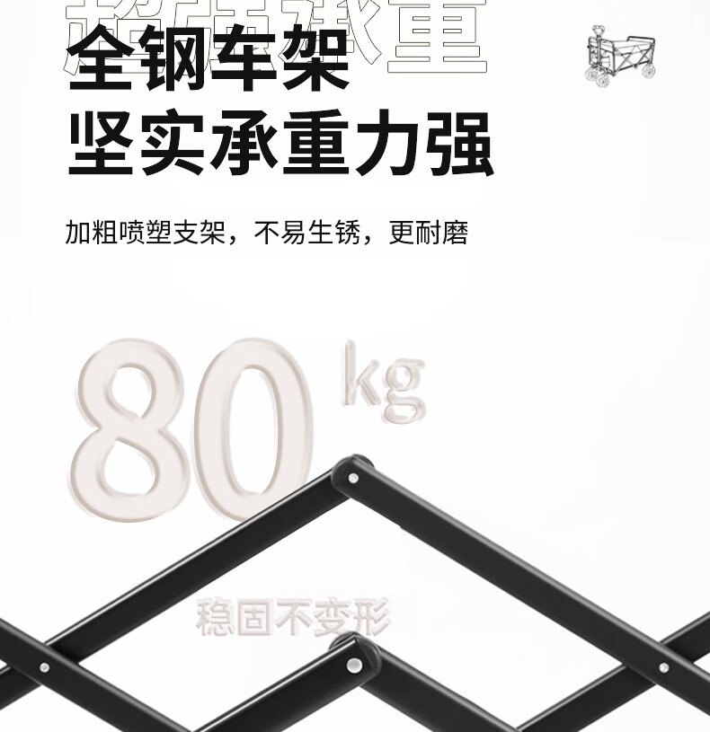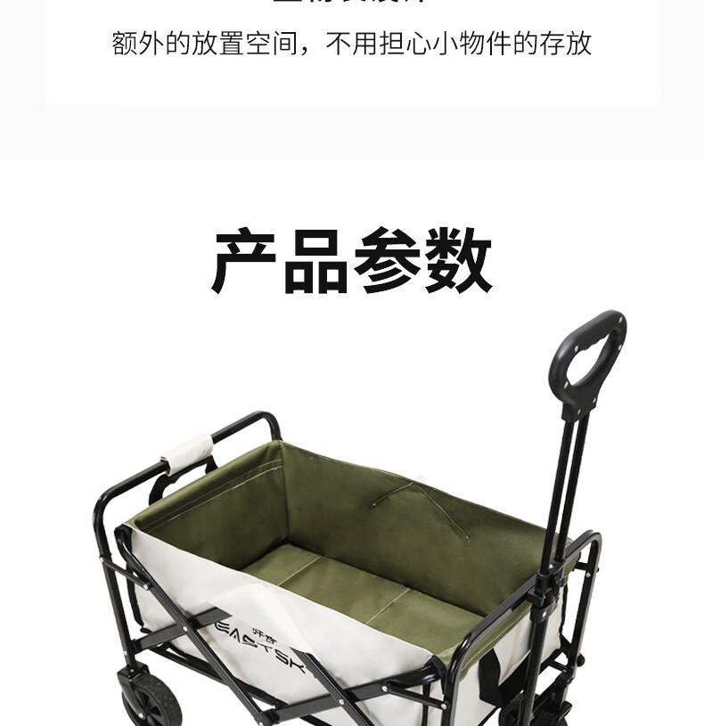 颜色:框架-黑色 布袋-外白内绿 材质:牛津布 产品尺寸:75*48*65-86cm 收拢尺寸:65*14*48cm 容量:80L