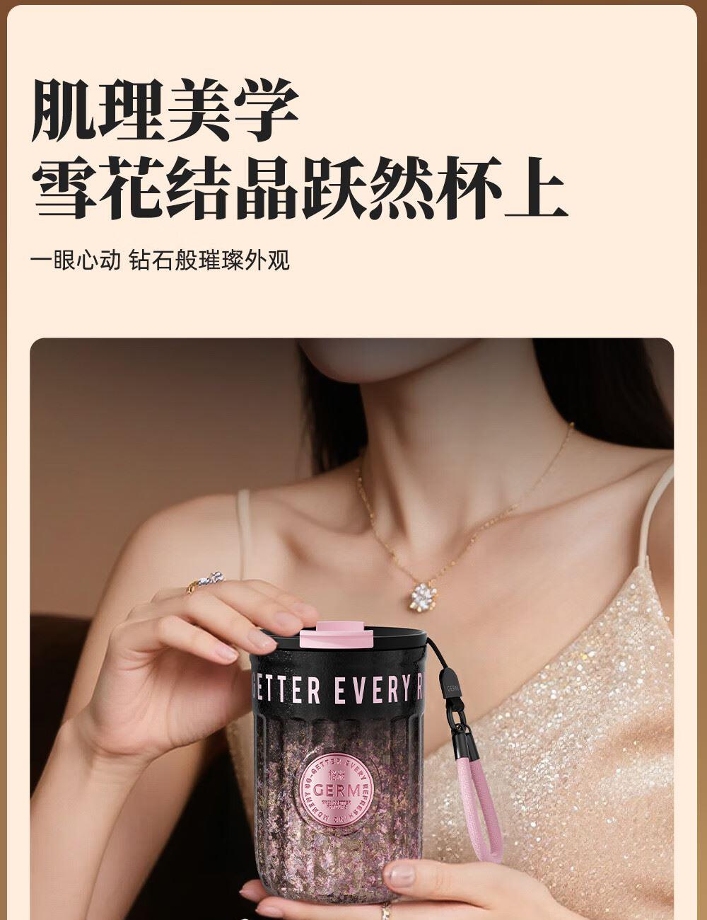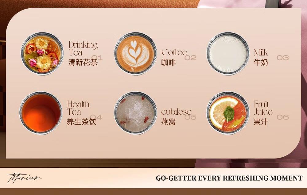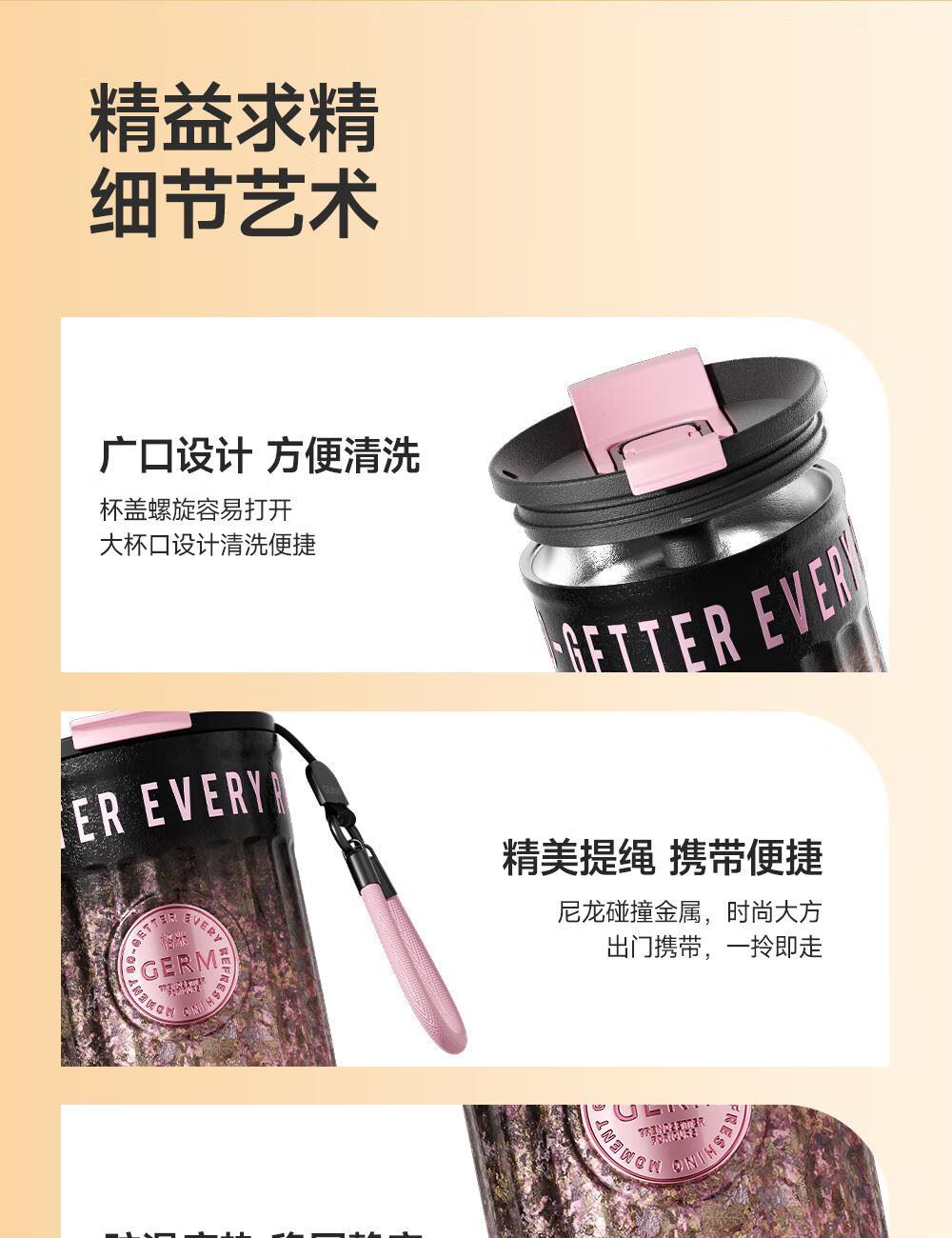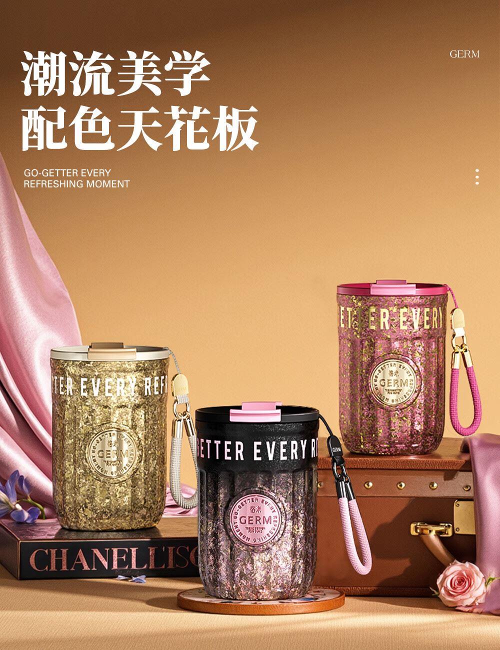 颜色: 绛粉/ 金缕/ 粉黛 产品规格:400ml材质:内胆/外壳 - 钛; 杯盖/吸管 - PP; 拎手 - 涤纶、锌合金; 密封件 - 硅橡胶; 包装尺寸:124×208×109mm 装 箱明细:20pcs/箱