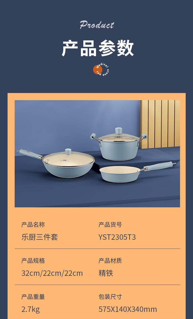 产品规格:炒锅32cm+汤锅22cm+煎锅22cm 产品材质:精铁(食品接触用)