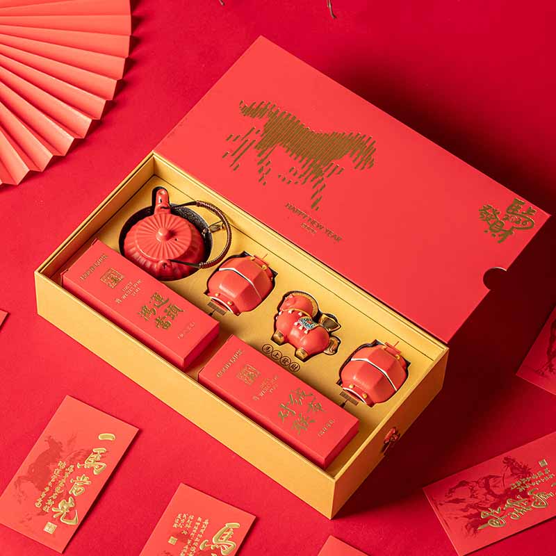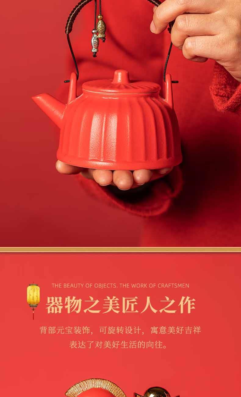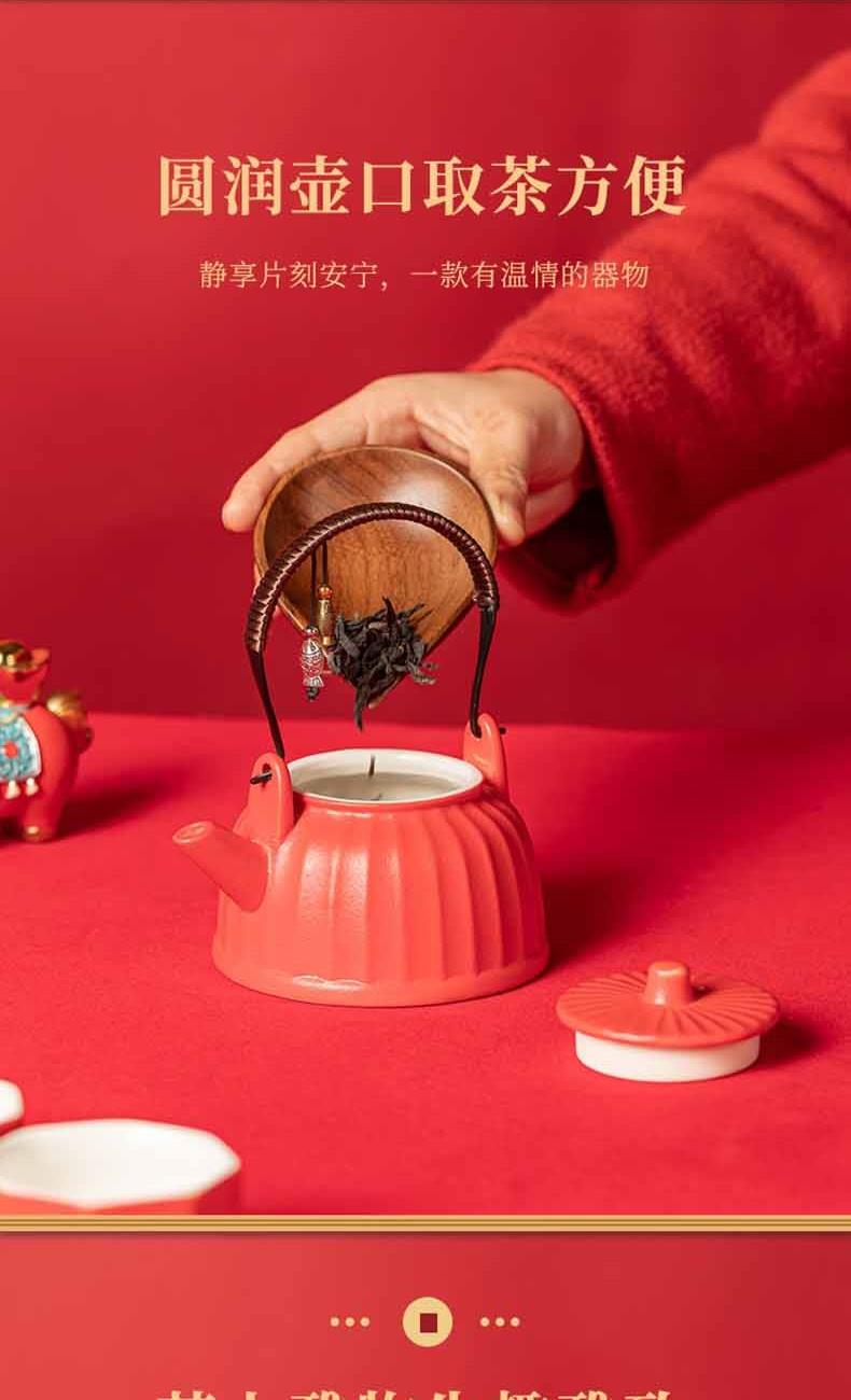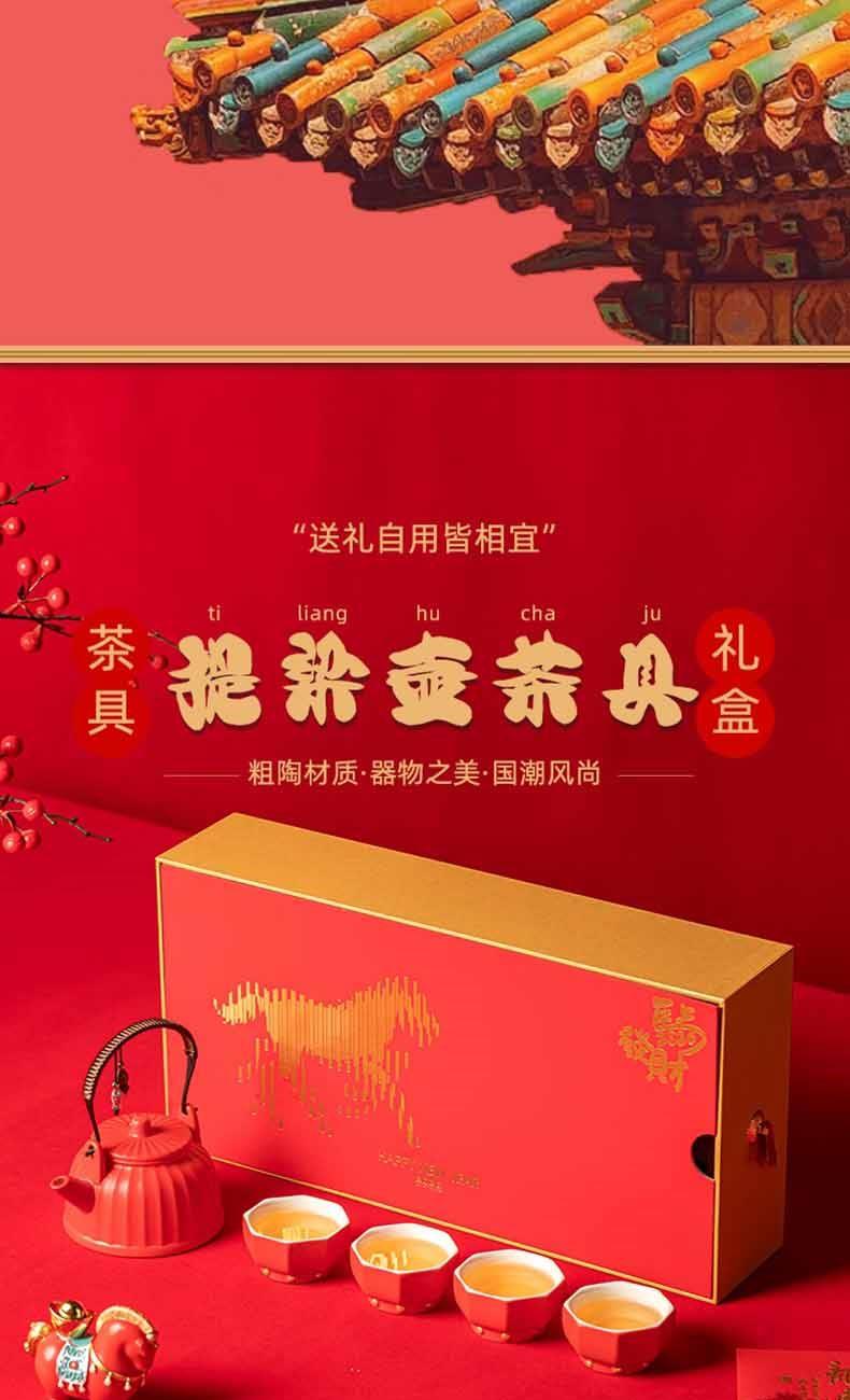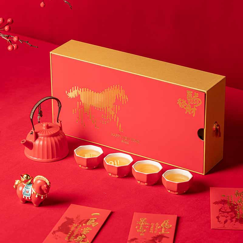 配置:茶壶1、茶杯4、元宝马摆件1、茶叶2、对联2、礼盒1、礼袋1 材料:陶瓷 包 装:礼盒包装