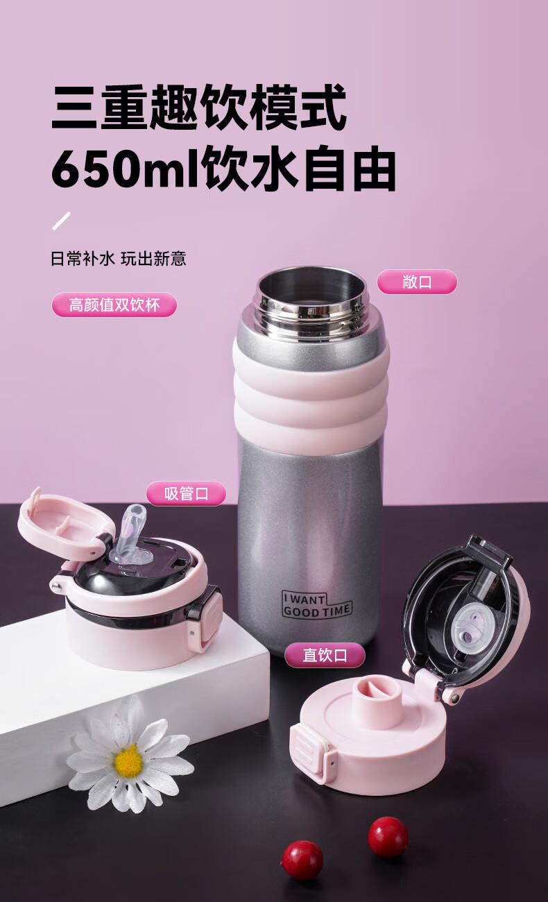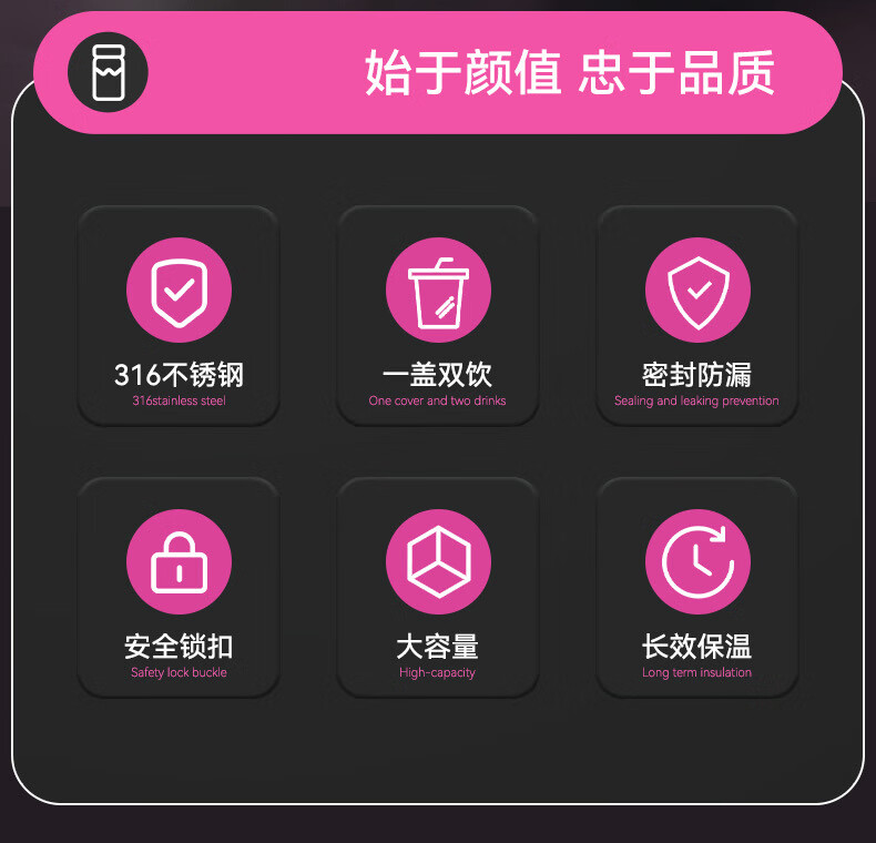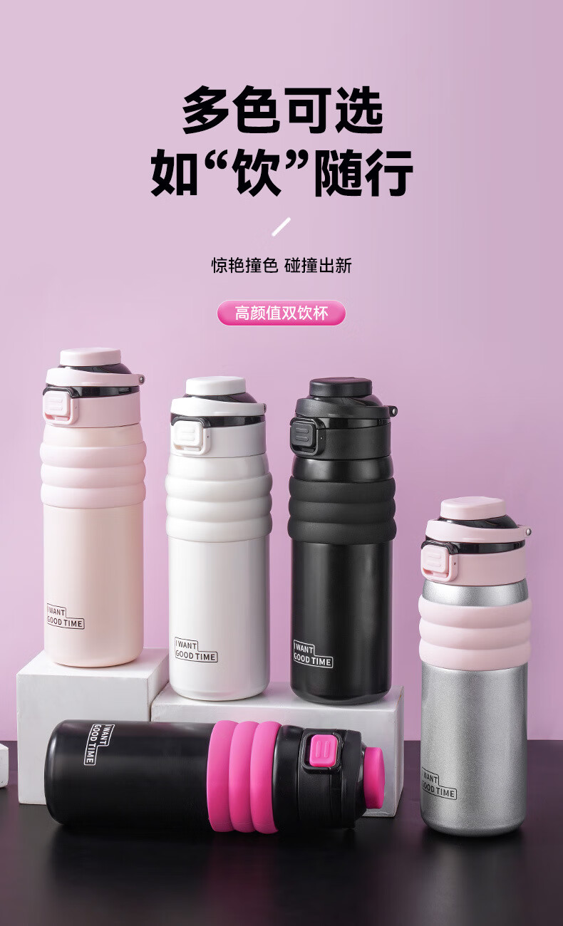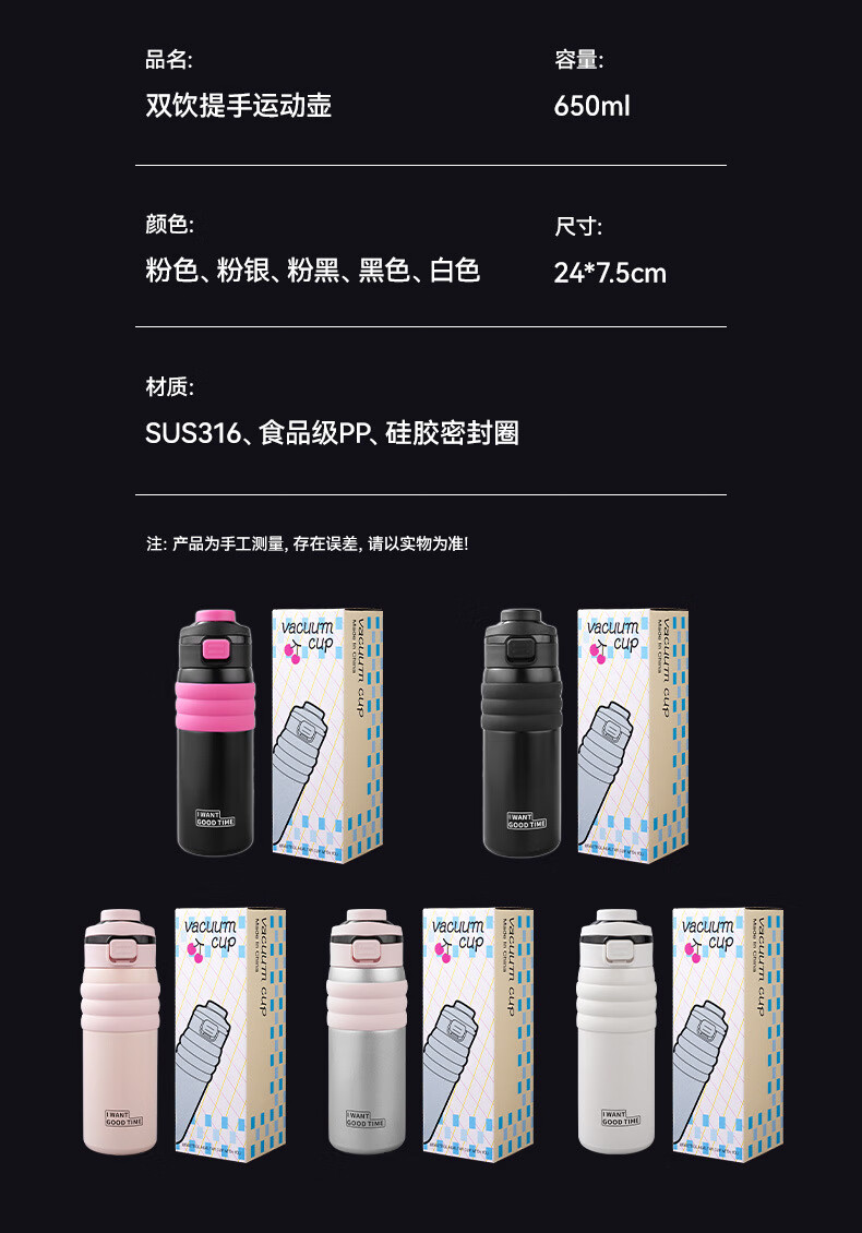 容量:550ML 装 箱:50只 /箱 材质:316不锈钢 颜色:粉、黑、白、本、蓝 包装:彩盒 品质:精品杯