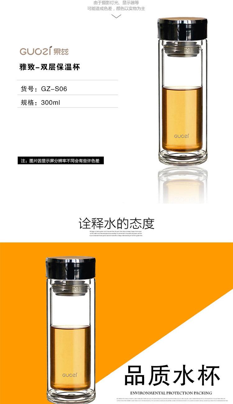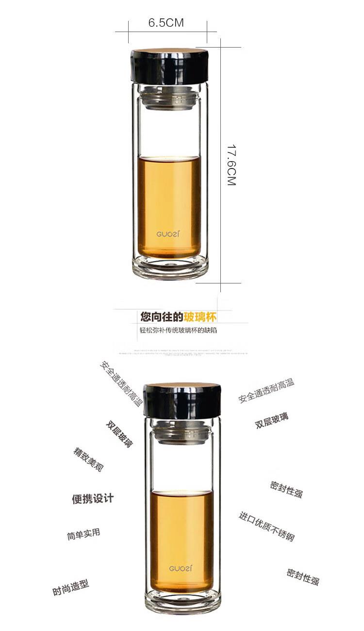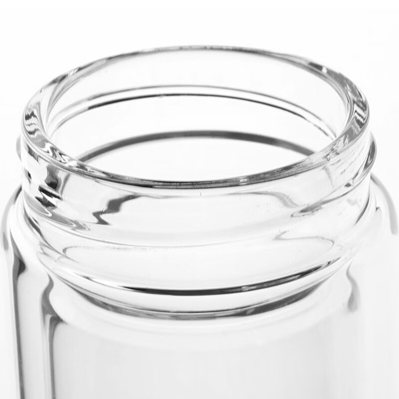 容 量:300ml 材 质:高硼硅玻璃+不锈钢茶网+pp盖 尺 寸:D65×175mm 装 箱数量:60只 /箱
