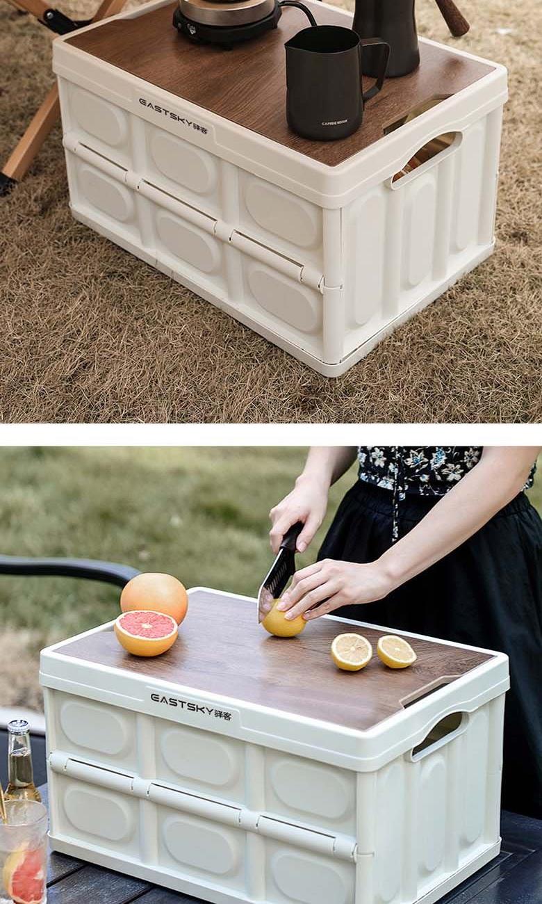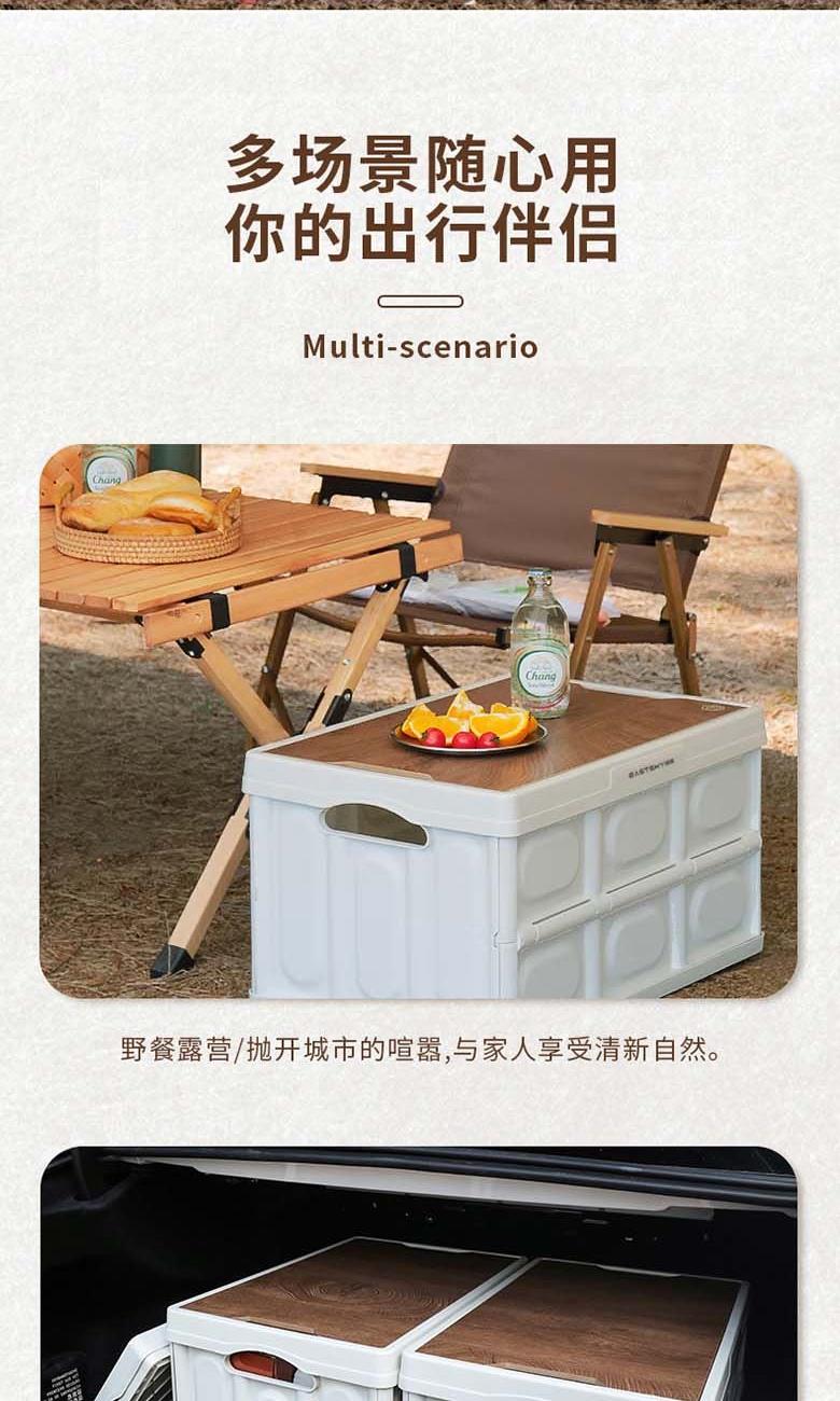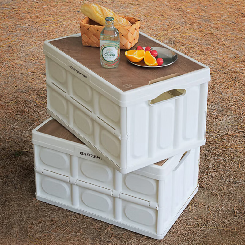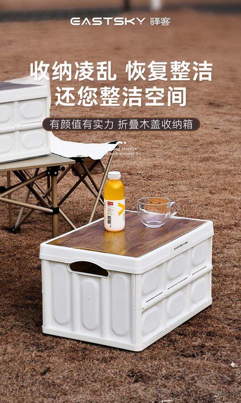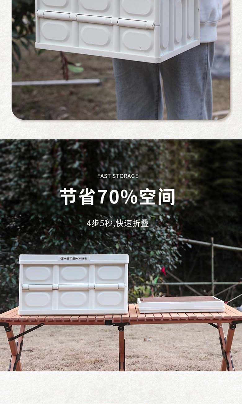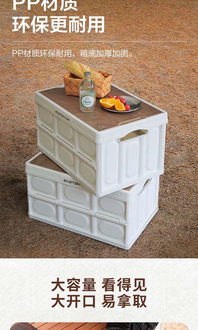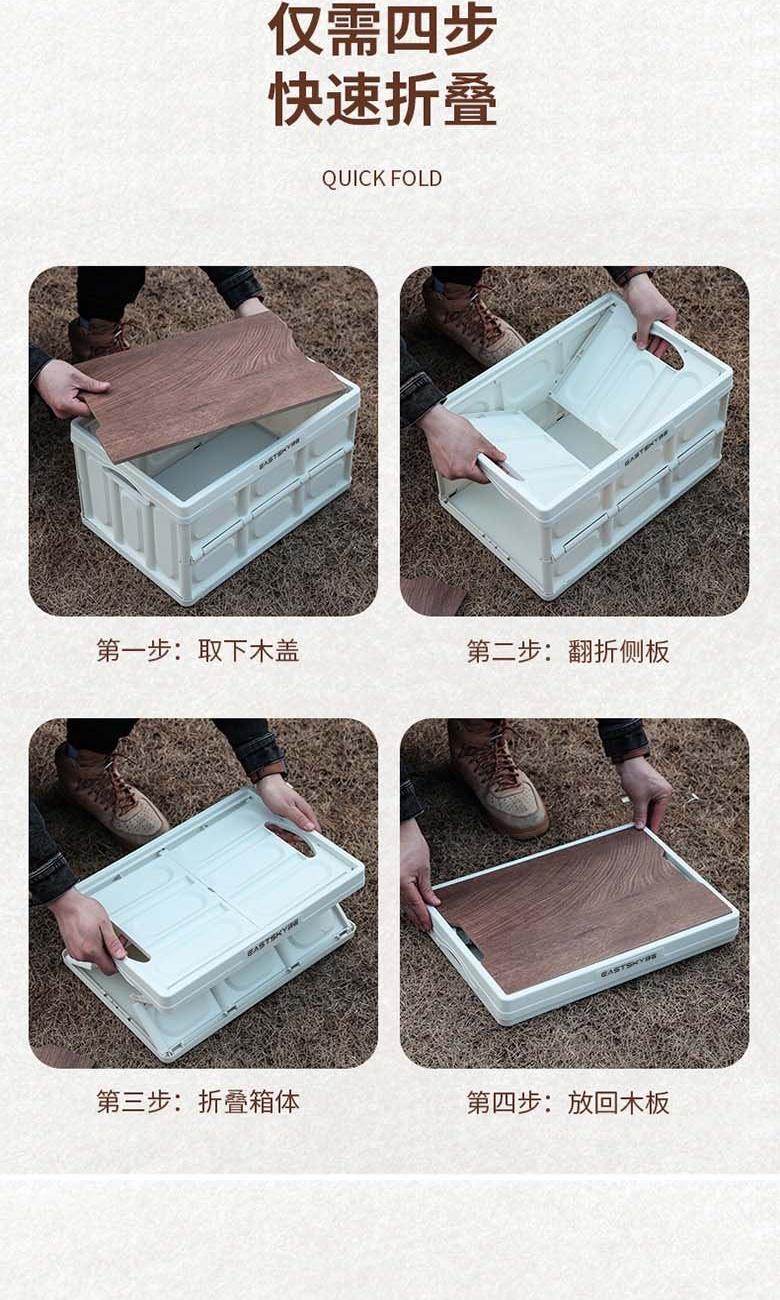 型号:EKH-9017 颜色:米白色 材质:箱体-PP 盖子-复合木板 规格尺寸:28.5*35*52.5(展开尺寸) 35*52.5*6.5cm(折叠尺寸) 容量:55L